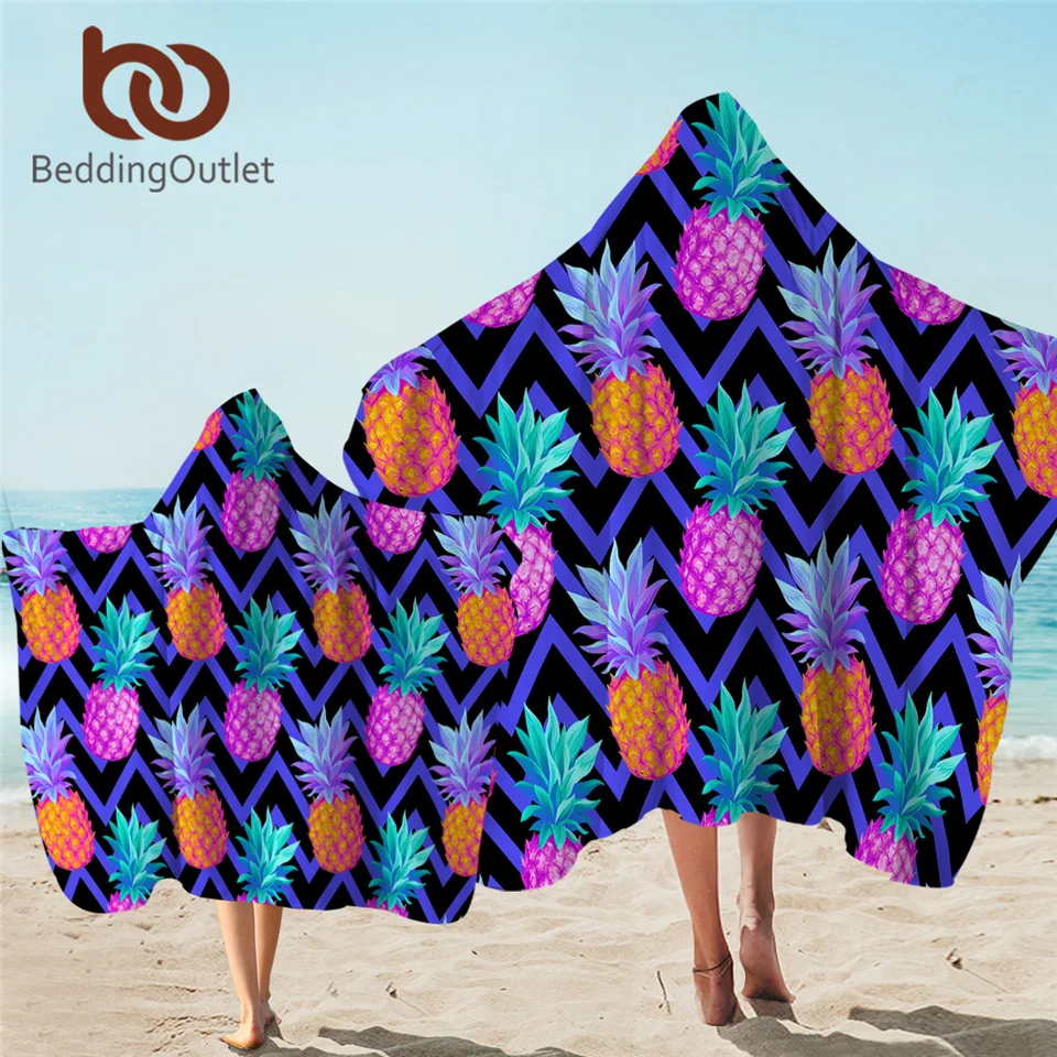Пляжное полотенце BeddingOutlet, с капюшоном в виде ананаса, банное полотенце из микрофибры, с тропическими фруктами, фиолетовое, Toalla