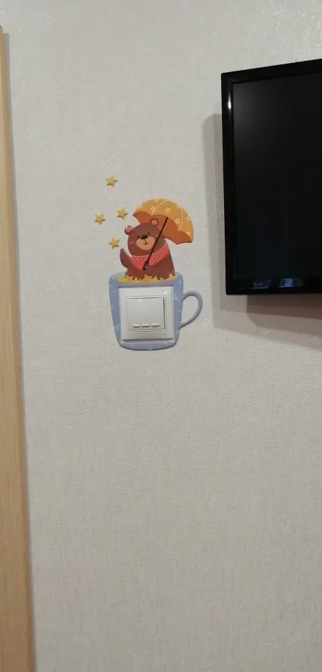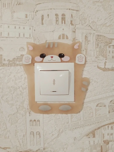 наклейка оказалась даже больше! Белая, цветастая, легко клеить. хорошо держится на обоях. ребенок был очень рад. наклейка вышла больше самого выключателя, но это не портит внешний вид. могу рекомендовать товар! пришел быстро.