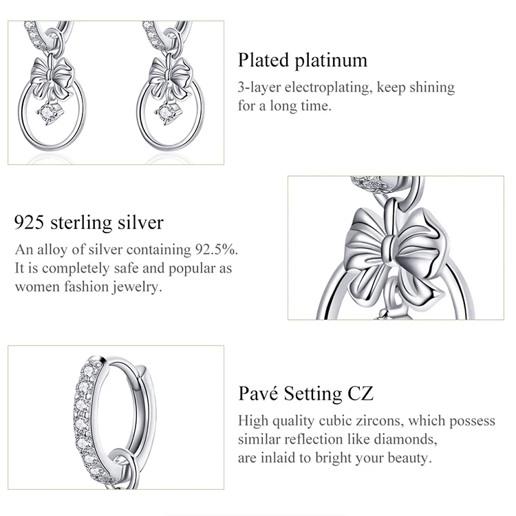 Материал: S925 + Платина с покрытием + фианит CZ Размер: 2,6*1,1 см Описание: Романтический бант с сияющим цирконием мягко Качается в ухе и наполняет сердце прекрасной девушки.