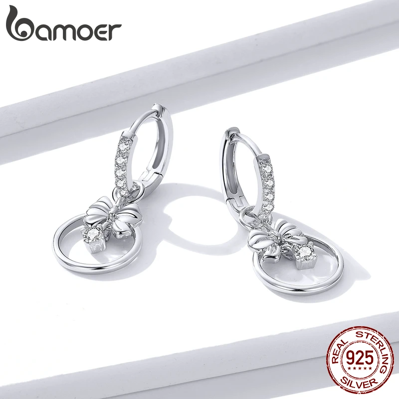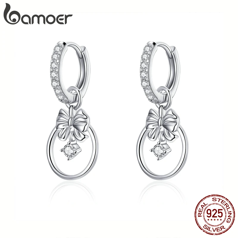 Женские серьги-подвески bamoer, из серебра 925 пробы, с прозрачными фианитами и бантом, свадебные эффектные ювелирные изделия, BSE332, 2020