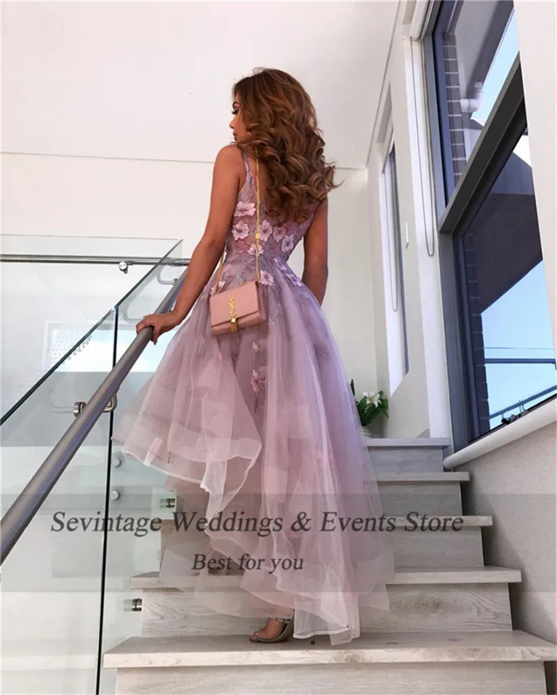 Коктейльное платье Sevintage, лавандовое, с 3D цветами, с глубоким V-образным вырезом, кружевной аппликацией, Тюлевое, для выпускного вечера