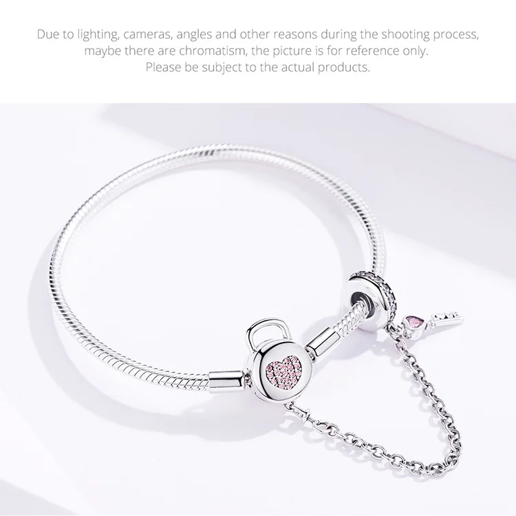 Подлинный 100% Стерлинговое Серебро 925 пробы в форме сердца браслет с подвеской в форме ключа подходит к оригинальным бусинам браслет-шарма женские ювелирные изделия цепочка под змею