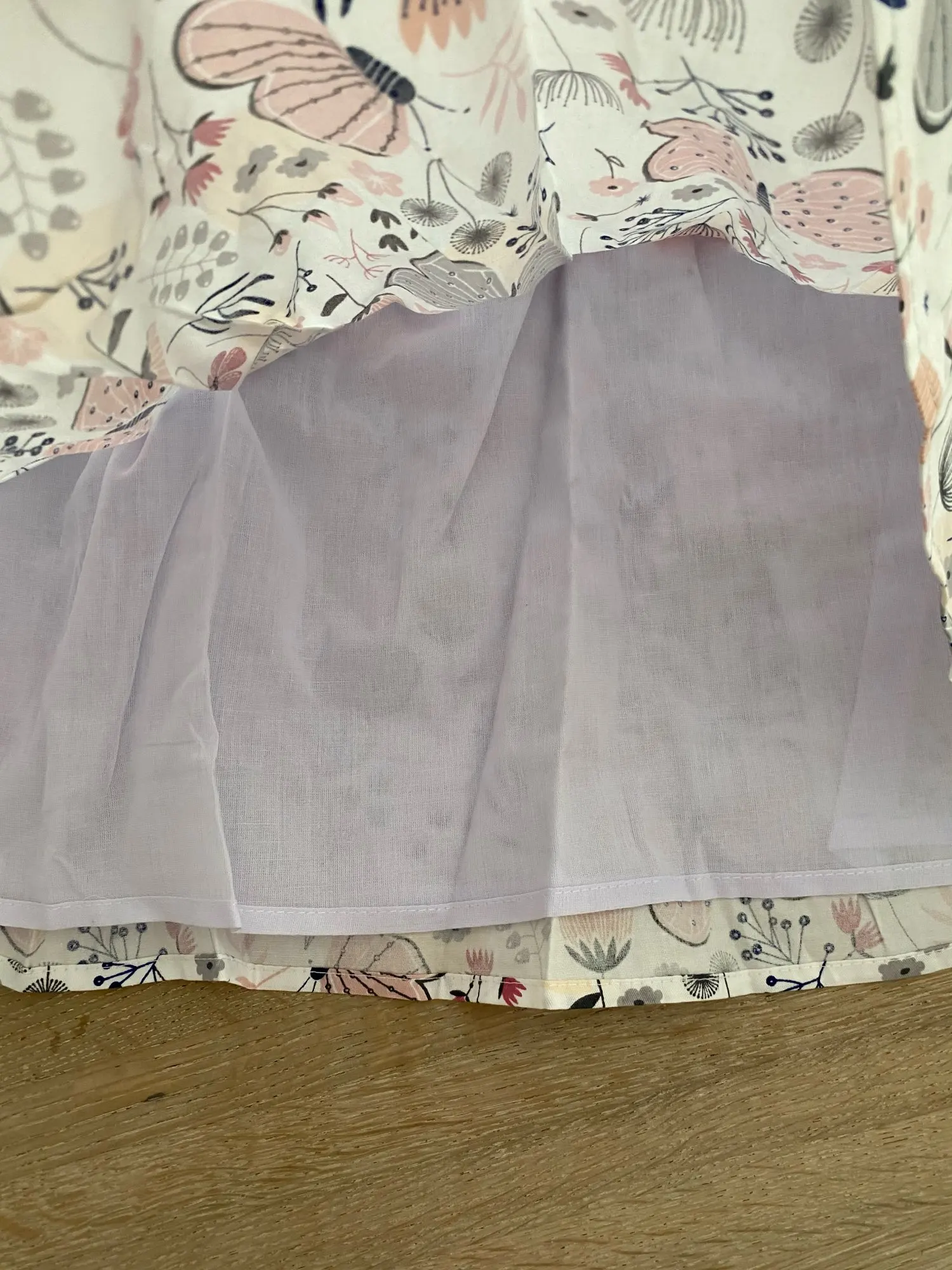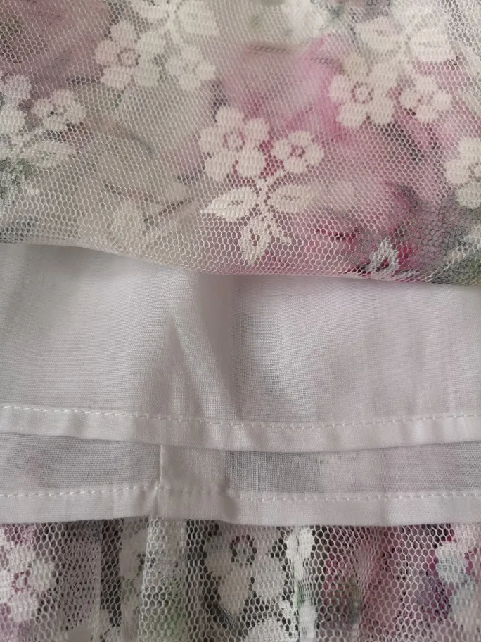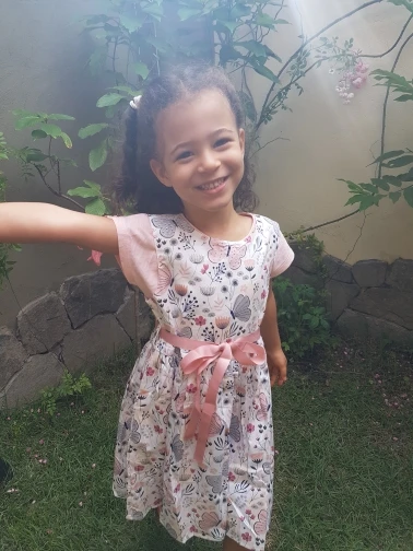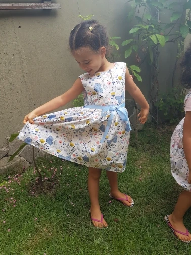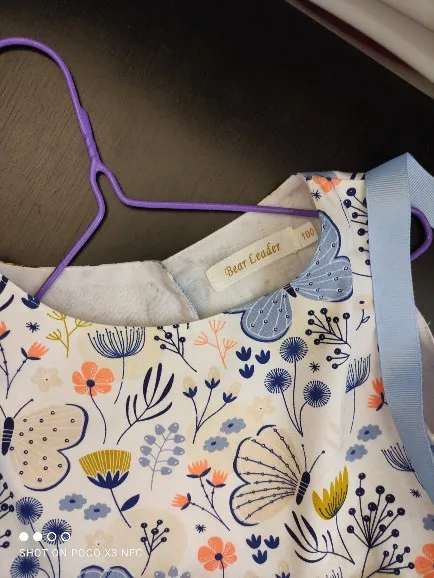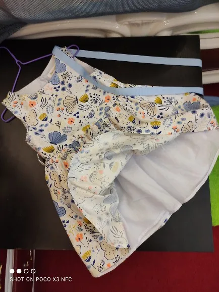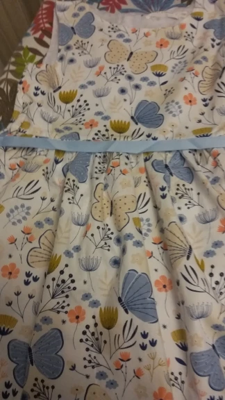 Bel vestito, per mia figlia di 4 anni e mezzo le ho preso 6 anni e mi sembra che le vada bene, forse dovevo prenderlo da 7 anni visto che ora è ancora presto. Spero d’estate non faccia caldo perché sotto c’è un altro strato di fodera in cotone.