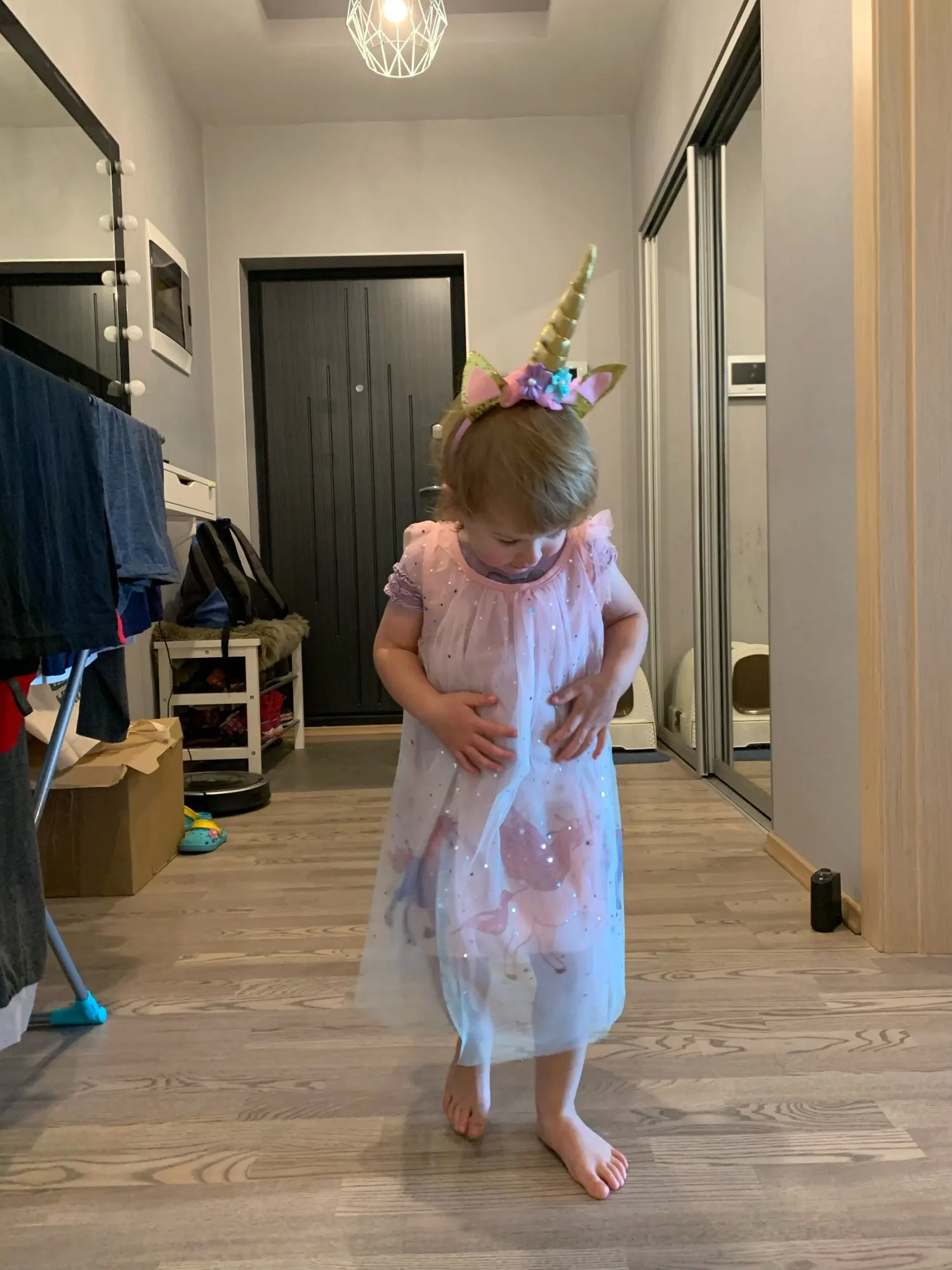 Это произошло очень быстро. Платье выглядит очень красиво. Я... Так же, как на фото. Это вполне соответствует возрасту. Я взял еще один размер, и на лето я думаю, что это будет хорошо