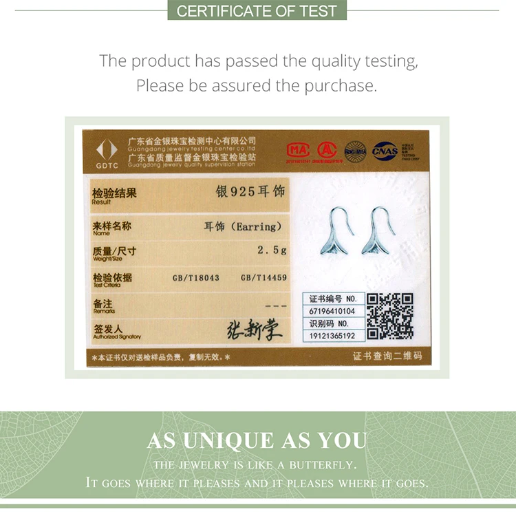 Номер Сертификатаbamoer fashion jewelry