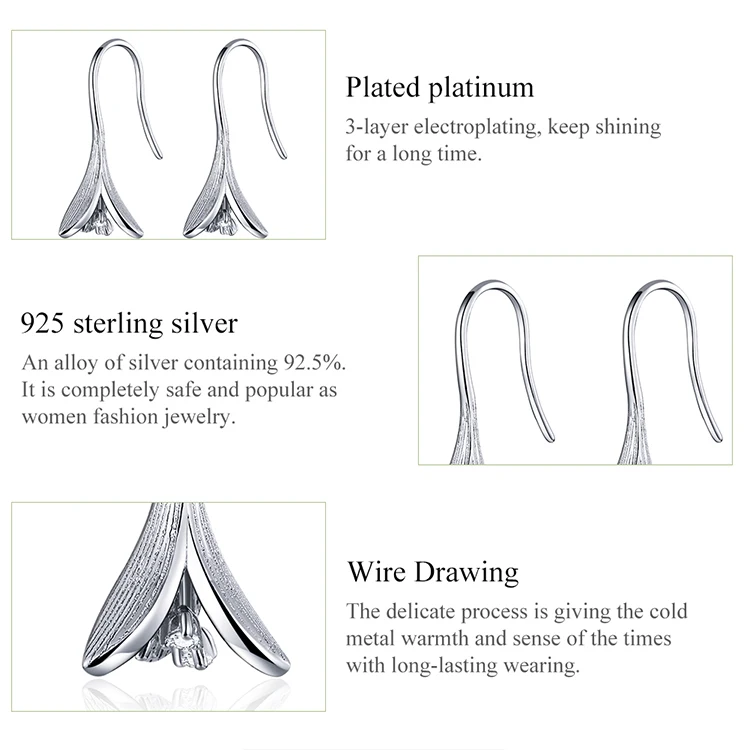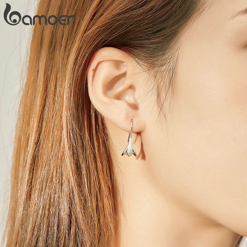 Женские серьги-подвески bamoer, из серебра 925 пробы с маленьким цветком жимолости, Ювелирное Украшение SCE820