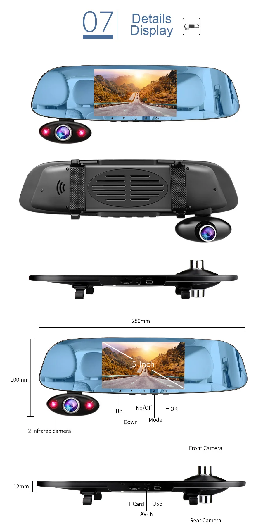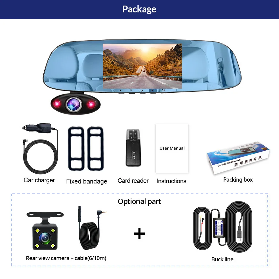 Кроме переднего и заднего вида, вы также можете следить за всем, что происходит внутри автомобиля. Можно выбрать другой режим просмотра экрана, до и после двойной записи, автомобиль внутри и снаружи той же записи, большой широкоугольный высокое качество изображения, более широкое видение, вождение более безопасно.