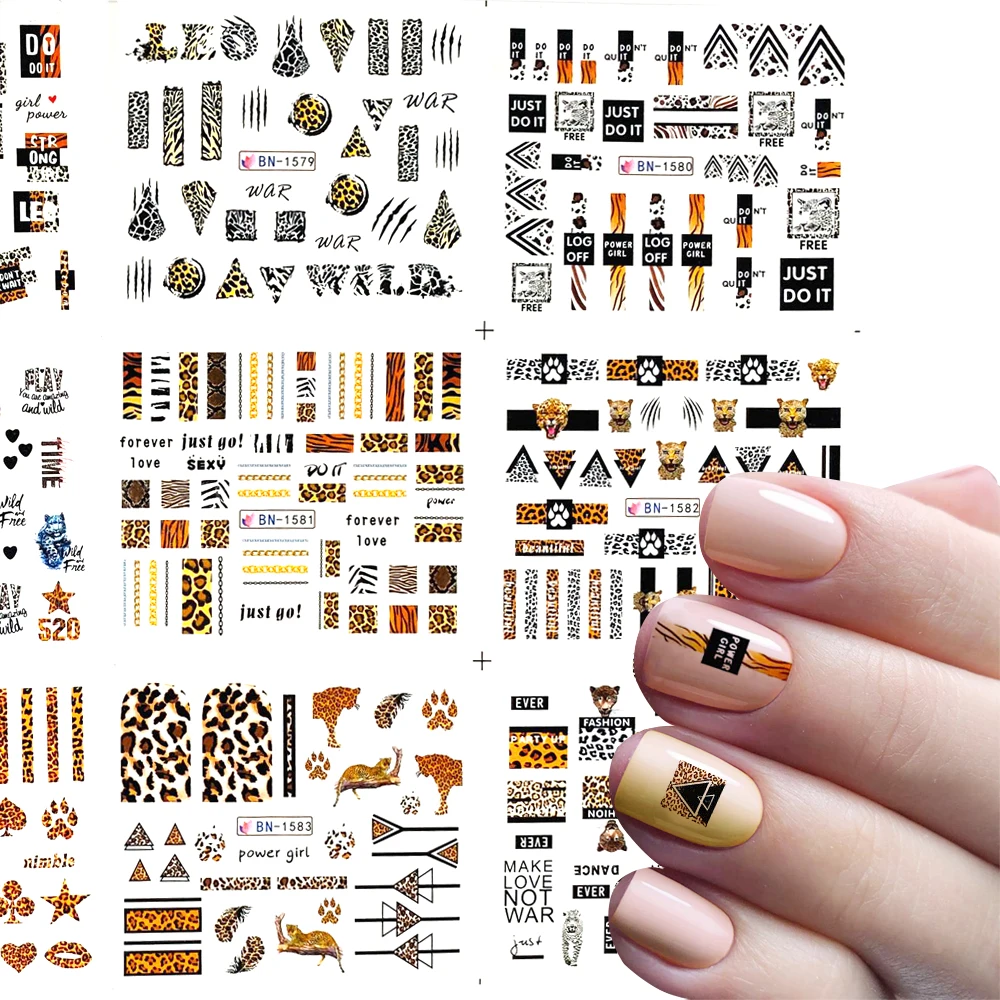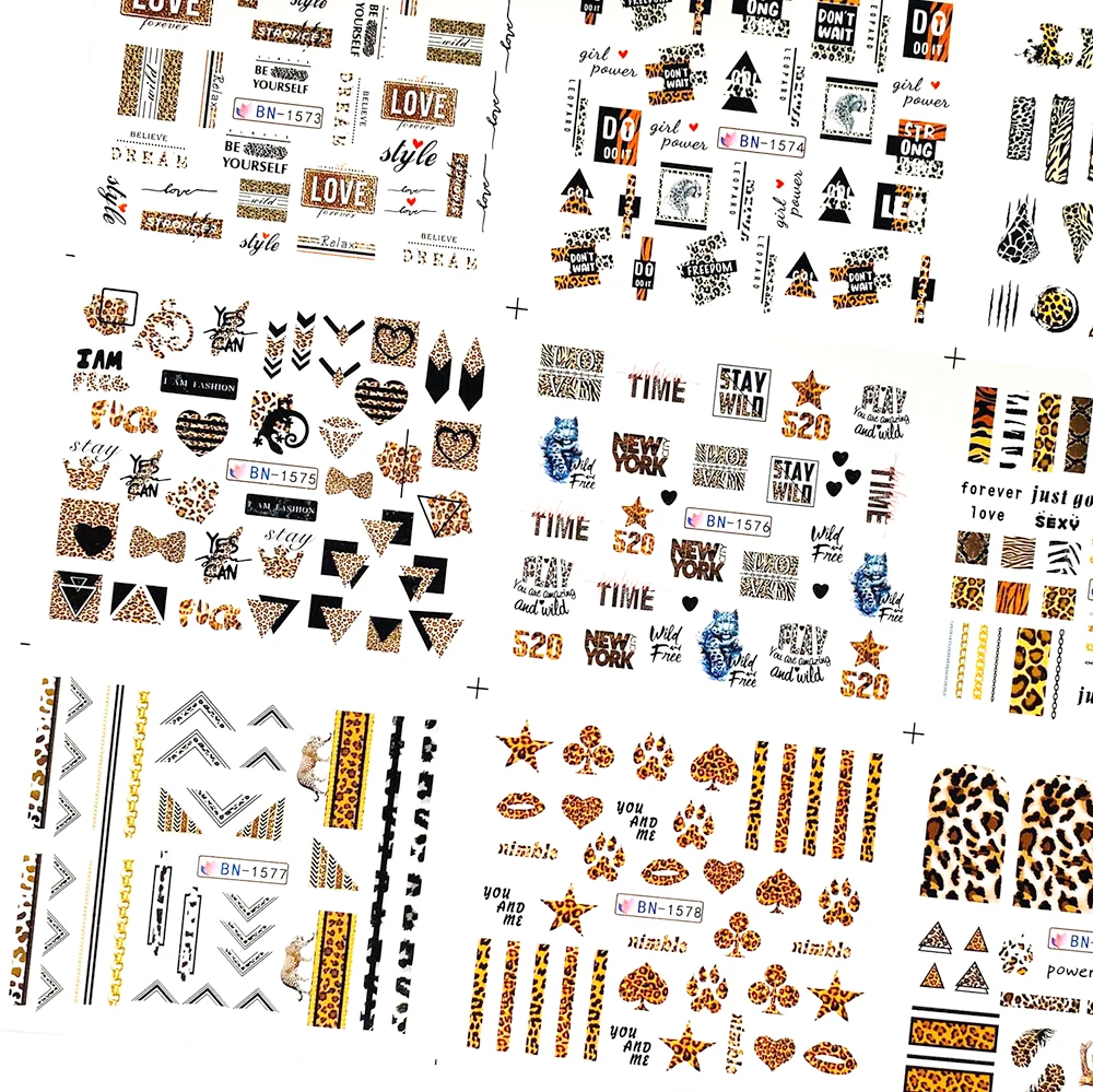 Наклейка для ногтей с леопардовым принтом, слайдер для дизайна ногтей, тату, водная наклейка, декор для ногтей, фольга для маникюра, 2020