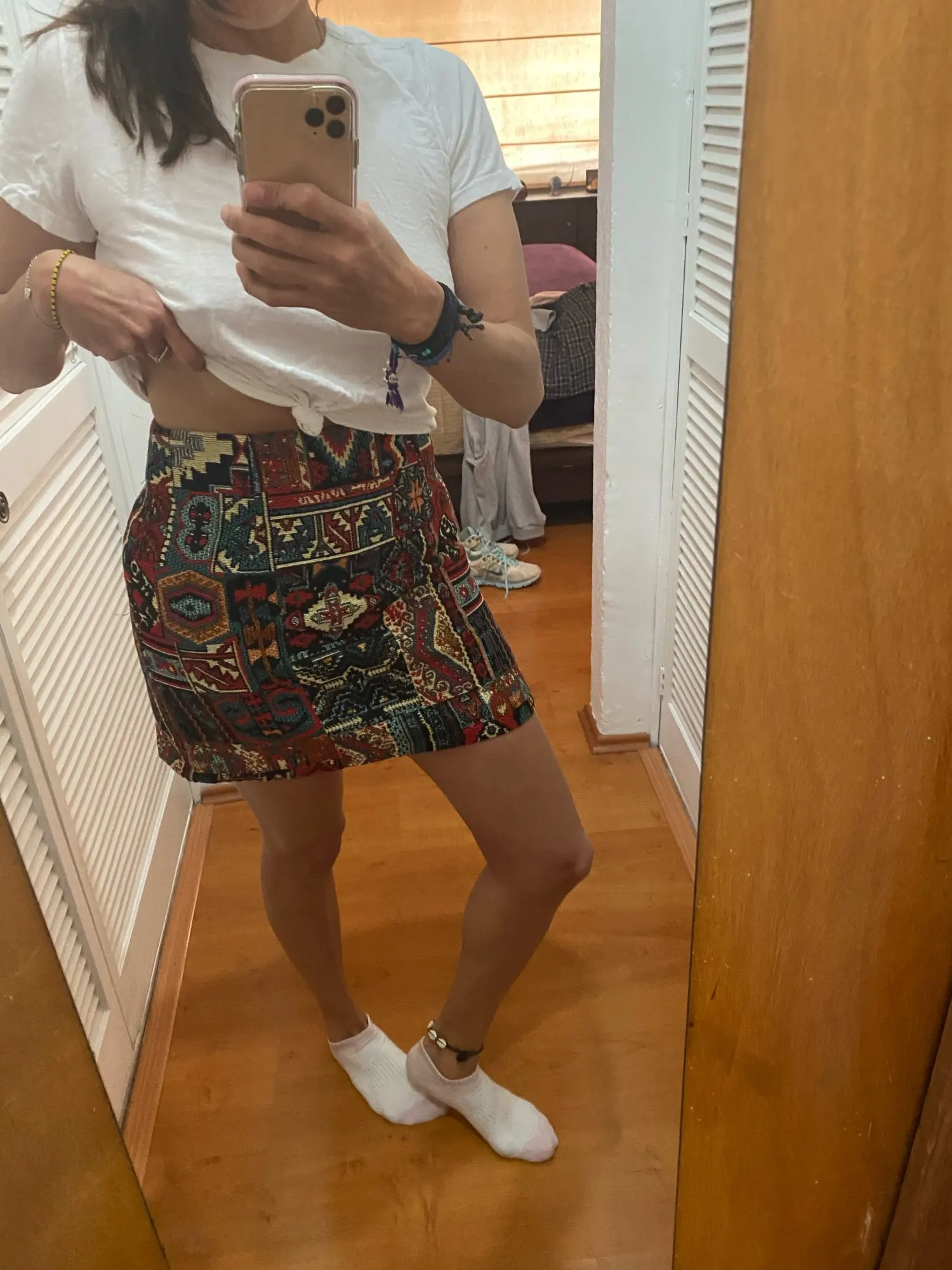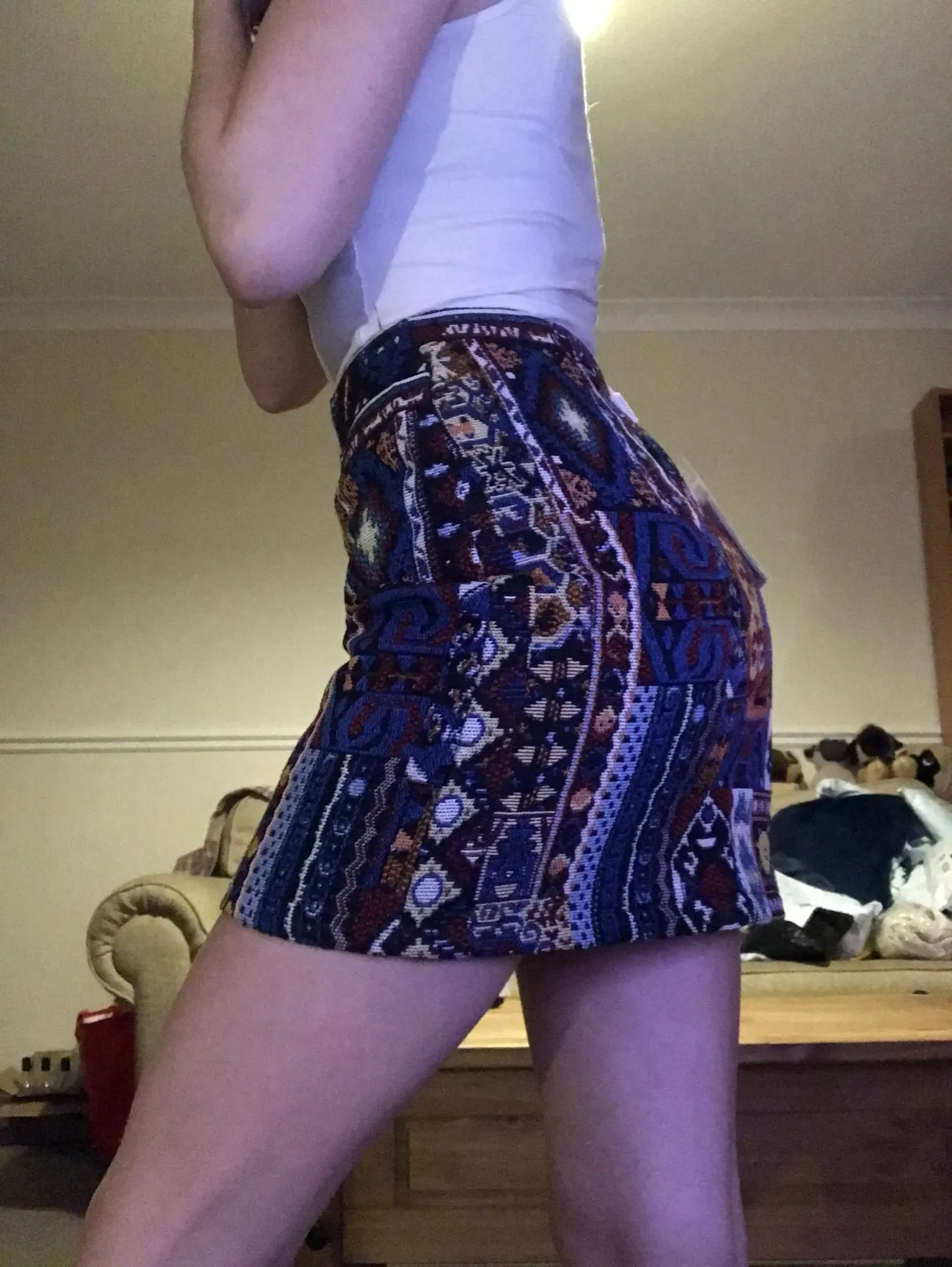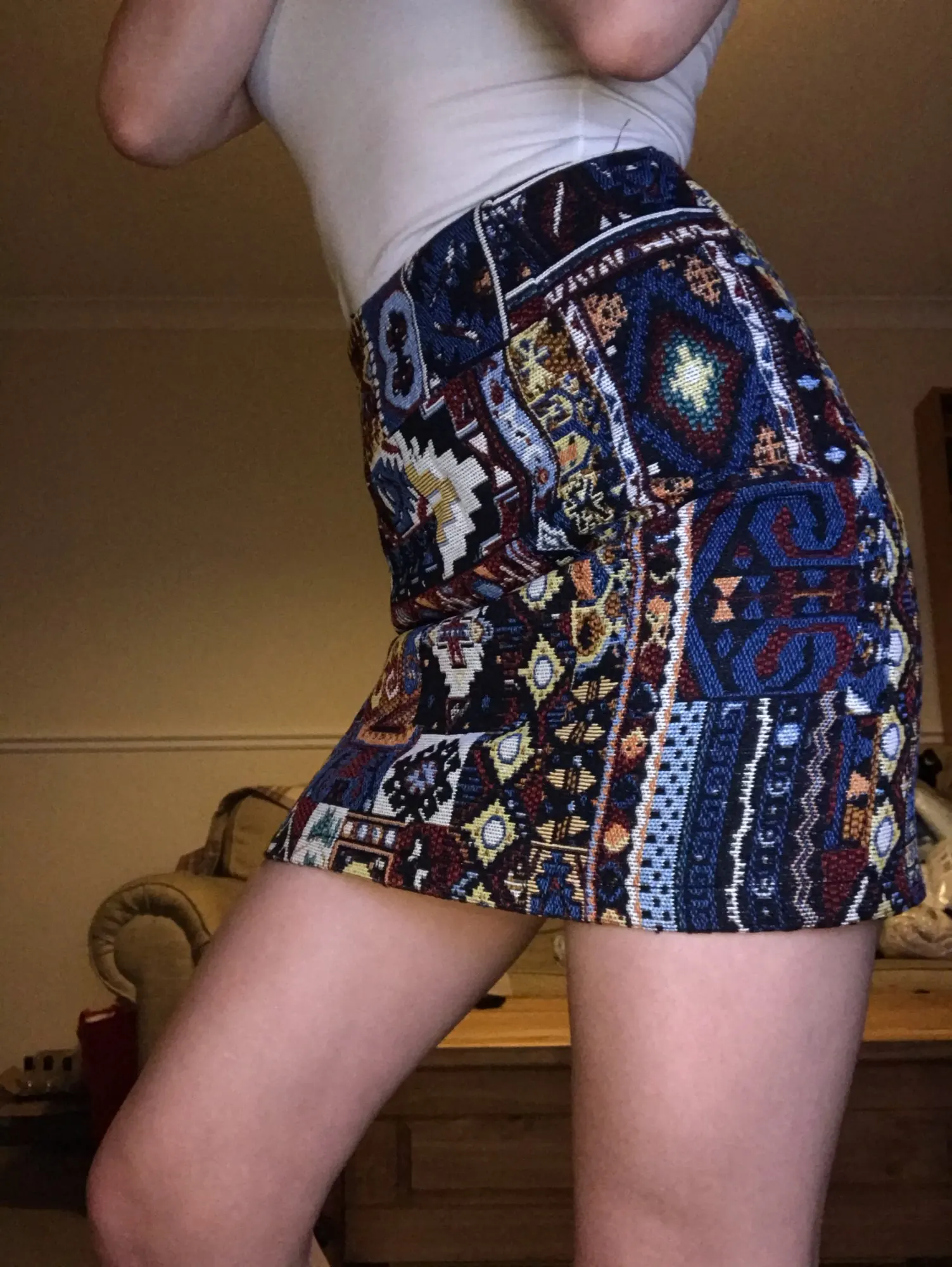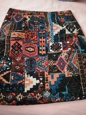 Красивая юбка, но немного великовата. Длина идеально подходит для моего роста 172 см-она доходит до середины бедра. Но юбка слишком широкая для бедер 89 см, поэтому она не выглядит потрясающе. Это красивая юбка.