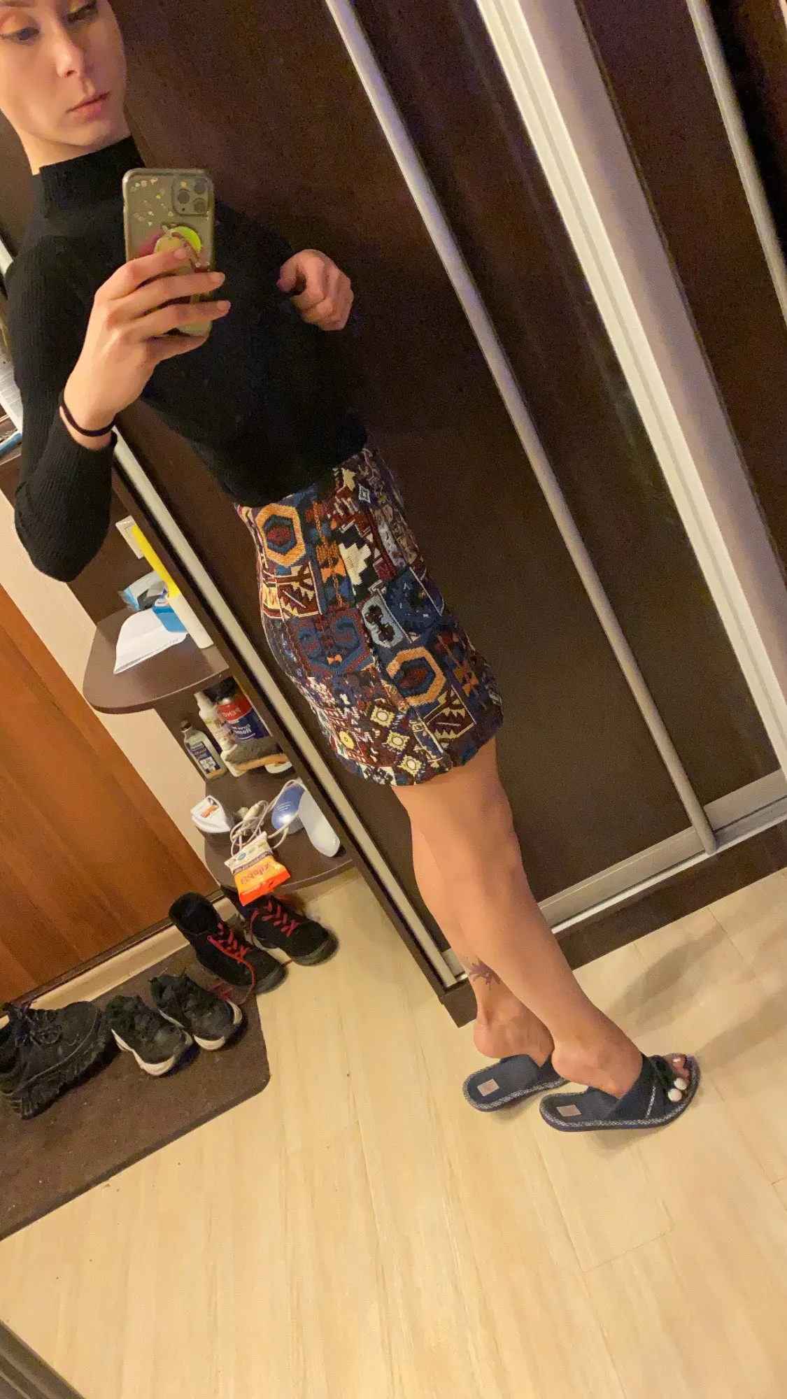 Ткань юбки оказалась намного плотнее, чем я ожидала. При носке вероятность образования сгибов высокая. Если в бёдрах она сидит очень плотно, придётся ее постоянно поправлять или одергивать. В целом, покупкой довольна. В талии буду убирать пару см., чтоб не топорщилась.
