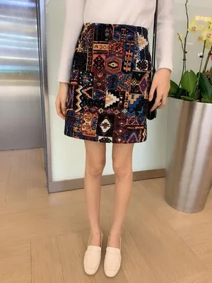 Юбка-трапеция Женская шерстяная, с геометрическим узором, с вышивкой, в стиле бохо, осень 2021