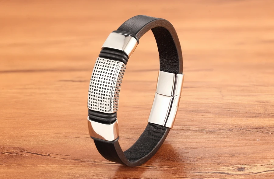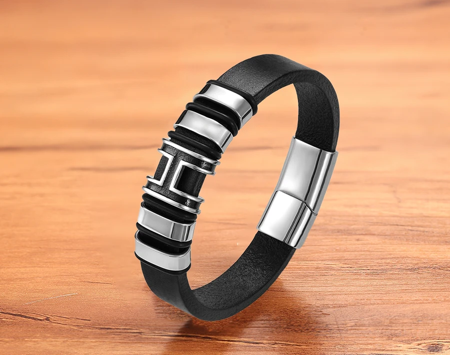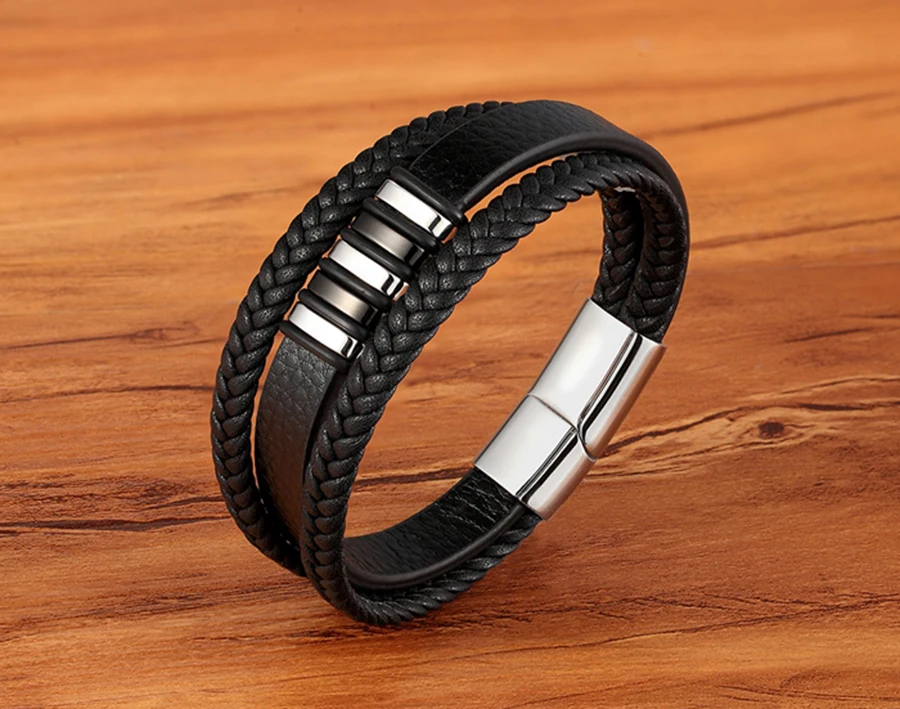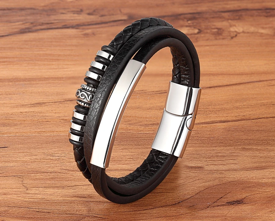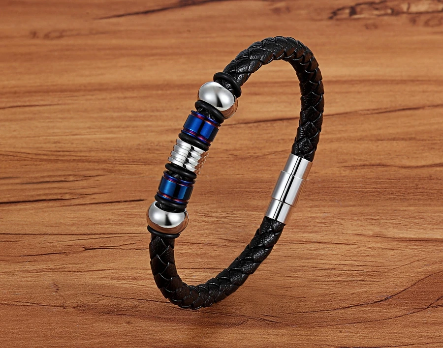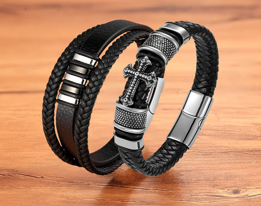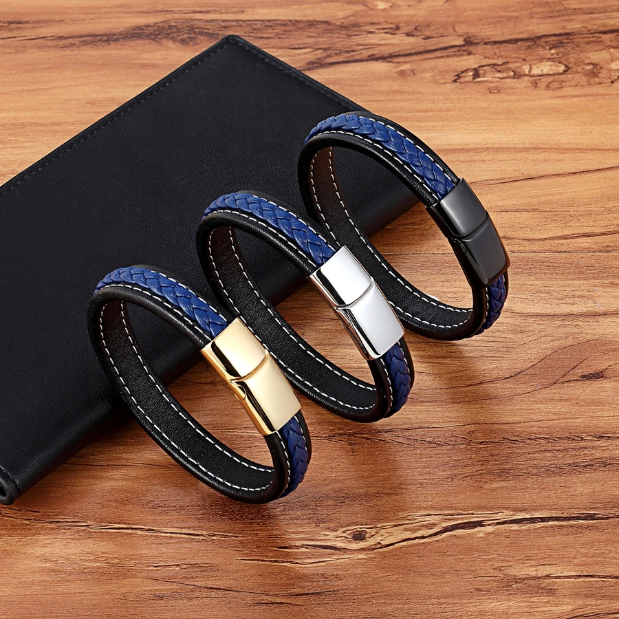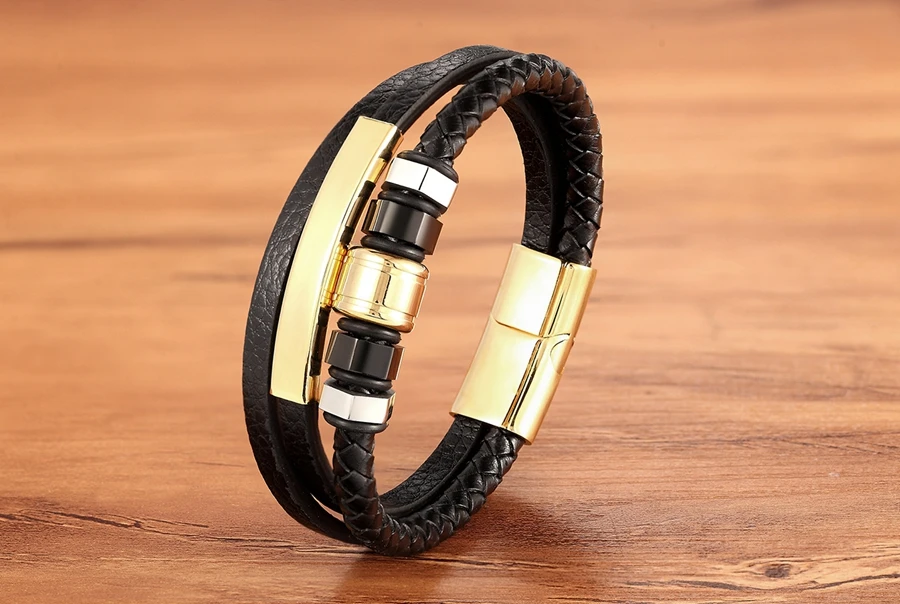 Мужской браслет из натуральной кожи, плетеный шнур золотого и серебряного цвета, модный шарм из нержавеющей стали, оптовые аксессуары, браслеты, ювелирные изделия