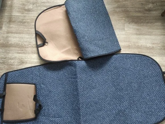 Видимо специально не написано что чехол один. Это раздражает. Верхнее крепление подголовника сделано неправильно. Образуется складка посередине чехла на спинке. Молнии без фиксаторов, разъезжаются. Вообщем дешевое одноразовое га....но.