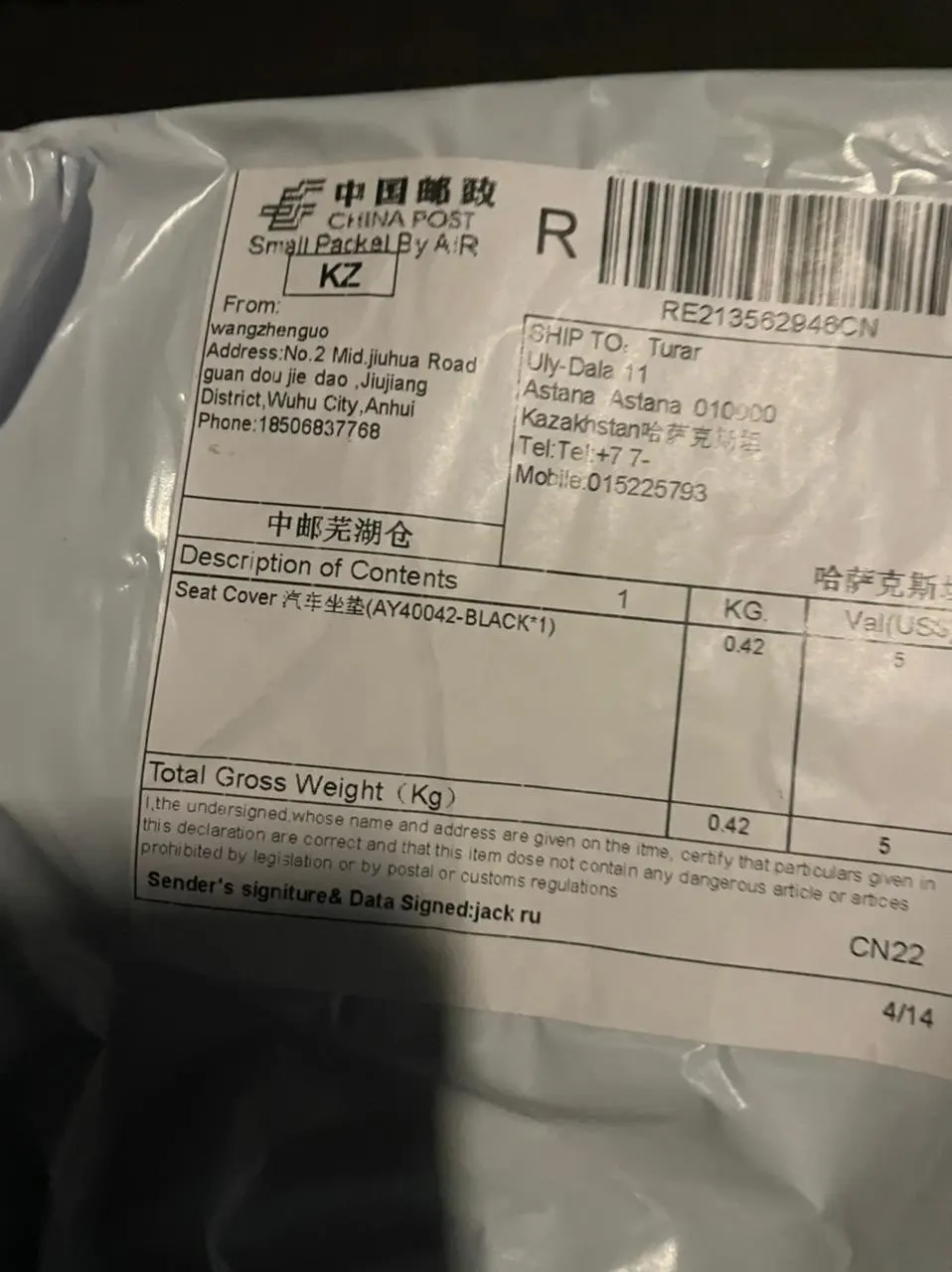 Страна: KZ Color Name: BLACK Доставка: Standard Shipping 19.01.2021