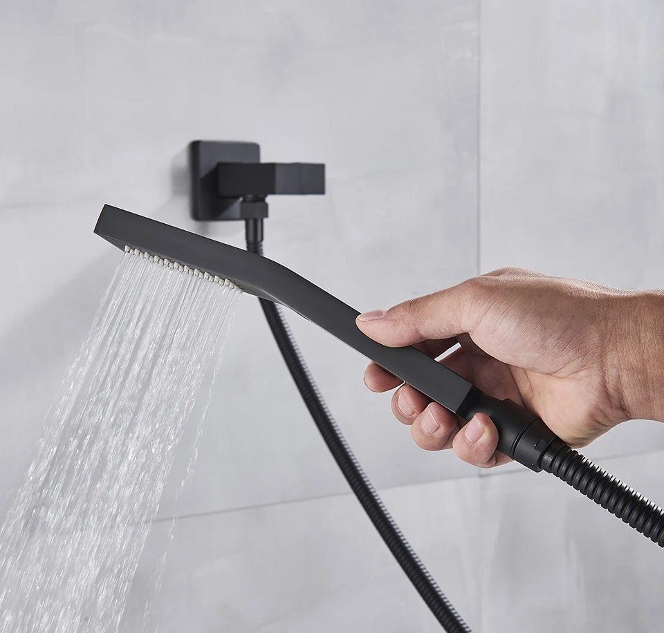 Черный набор для душа настенный смеситель для душа Тропический смеситель для душа для ванной комнаты с ручным душем вращающийся излив для ванны