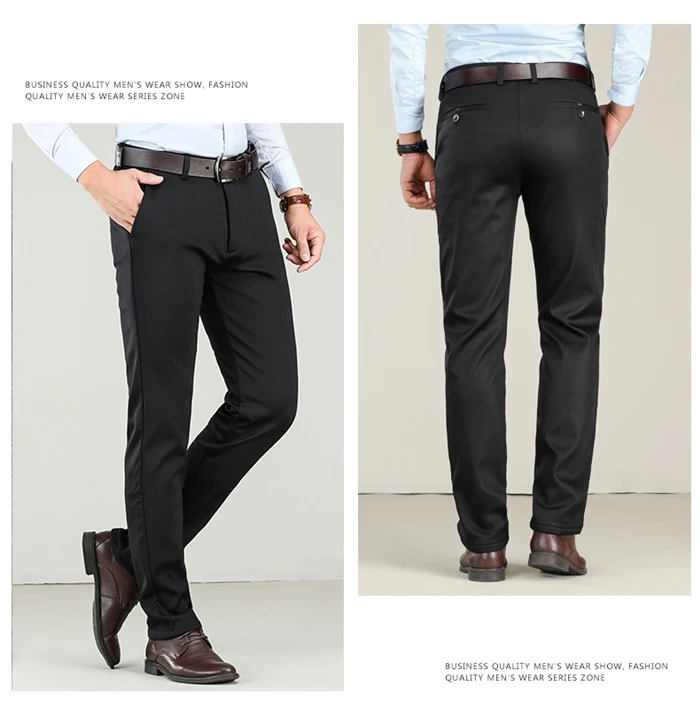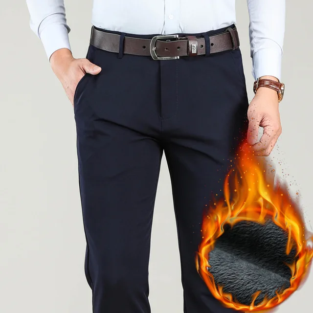 Мужские утепленные брюки с флисовой подкладкой, Теплые повседневные штаны, деловые модные классические Стрейчевые брюки, черные, большие размеры 40 42 44, для зимы