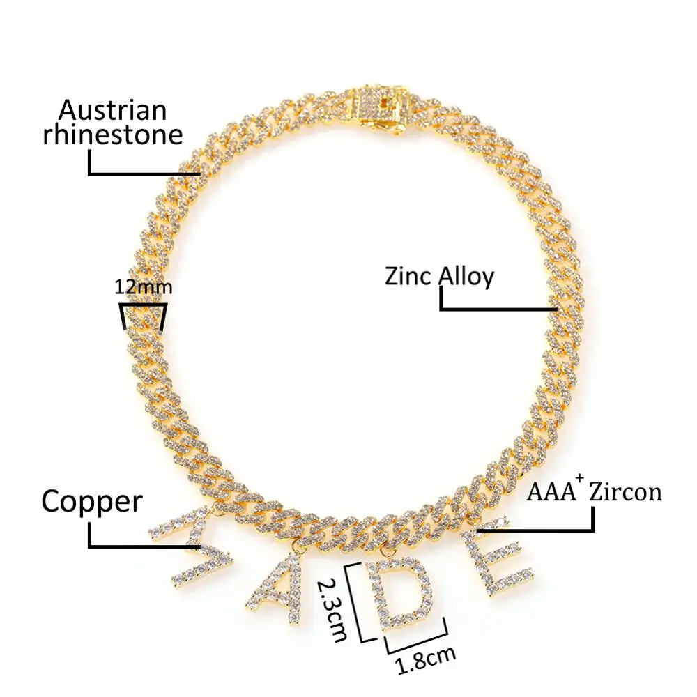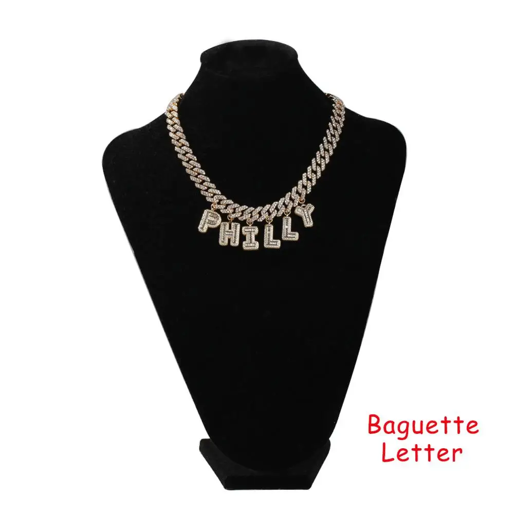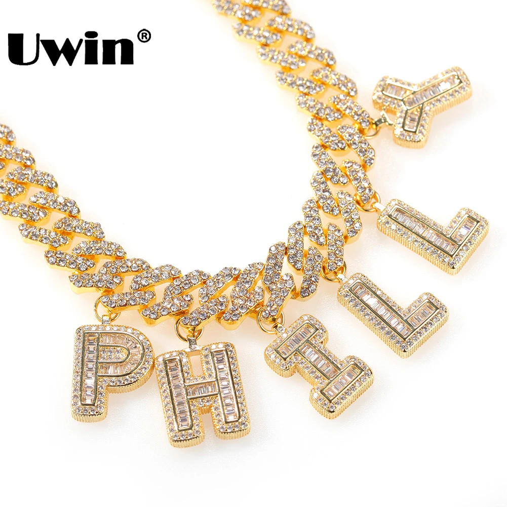 UWIN хип-хоп ювелирные изделия DIY буквы ожерелье и браслет 12 мм мужские S-Link Майами кубинские добавить багет буквы модные ювелирные изделия оптом