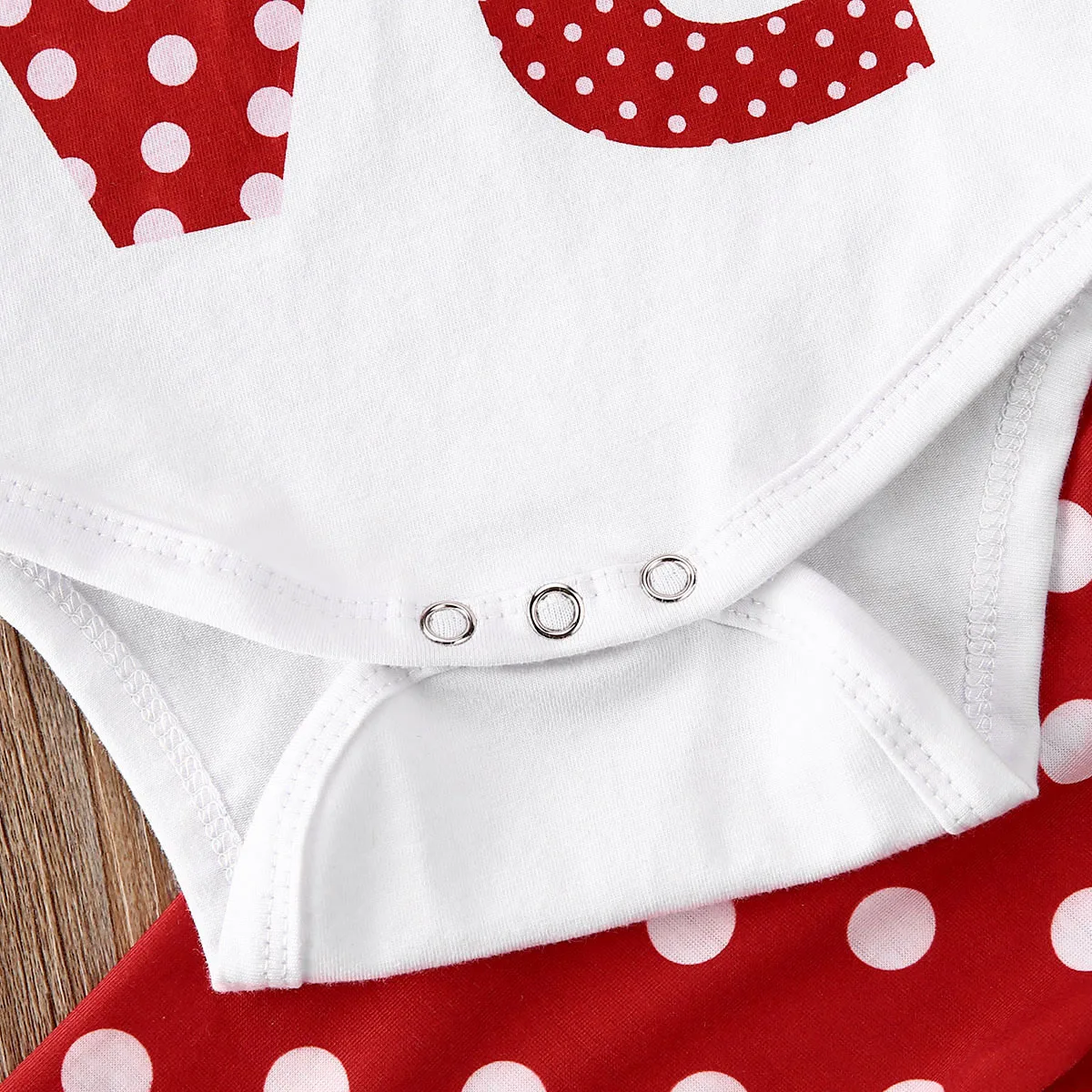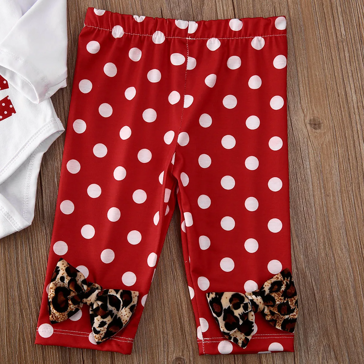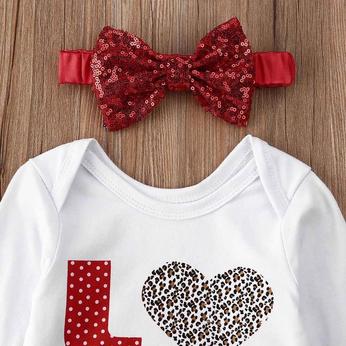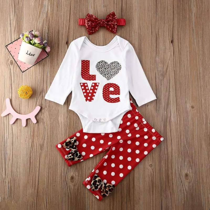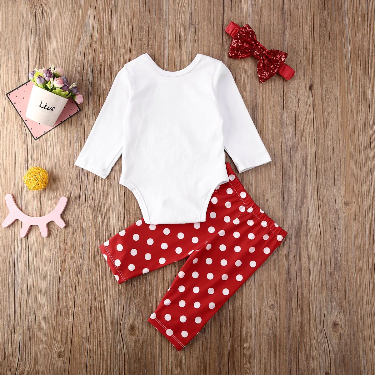 Комплект одежды для новорожденных девочек 0-18 месяцев, комбинезон в горошек с длинным рукавом на День святого Валентина, топ + искусственная повязка на голову, комплект одежды