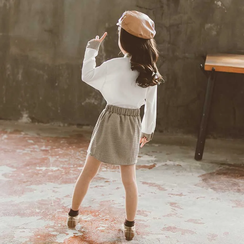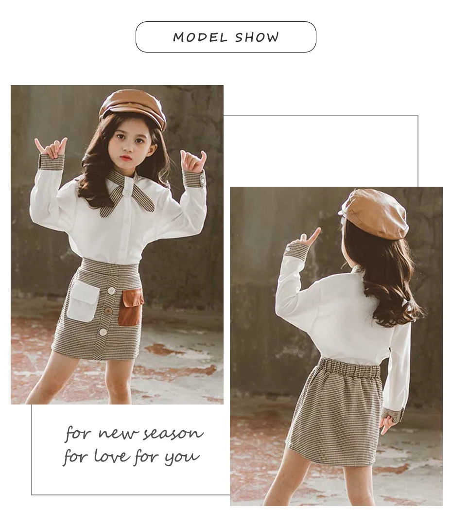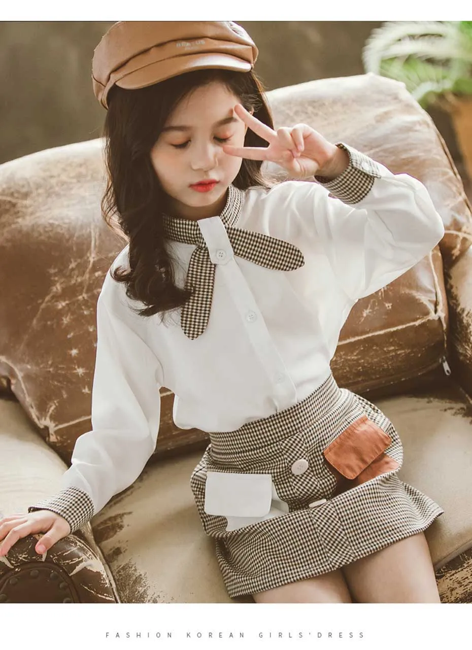 Юбка и рубашка для девочек, осенняя, в клетку, с длинным рукавом, на возраст 6, 8, 10, 12, 14