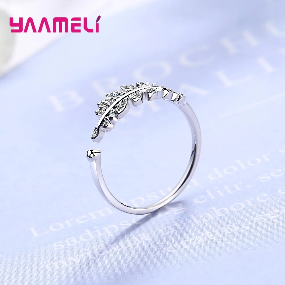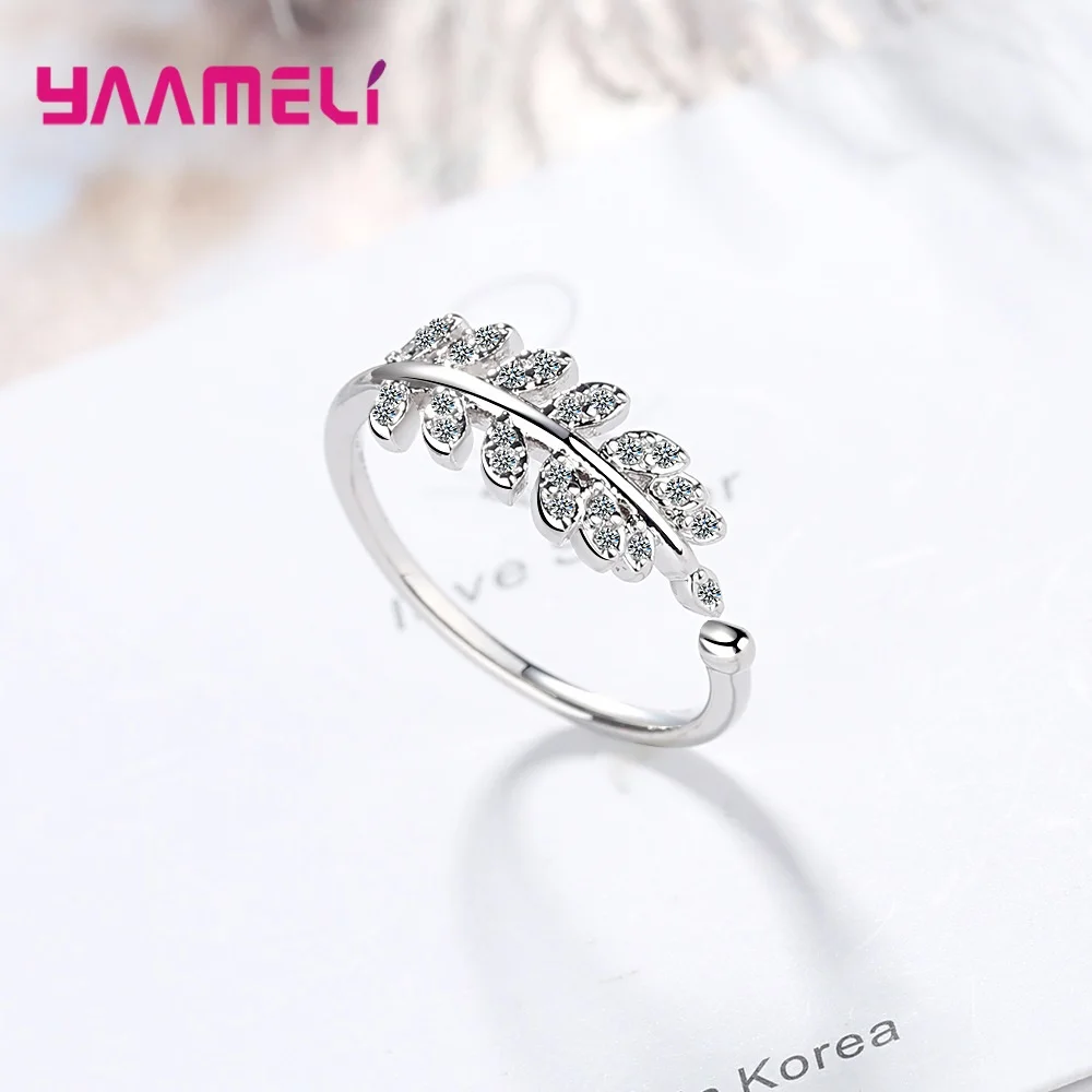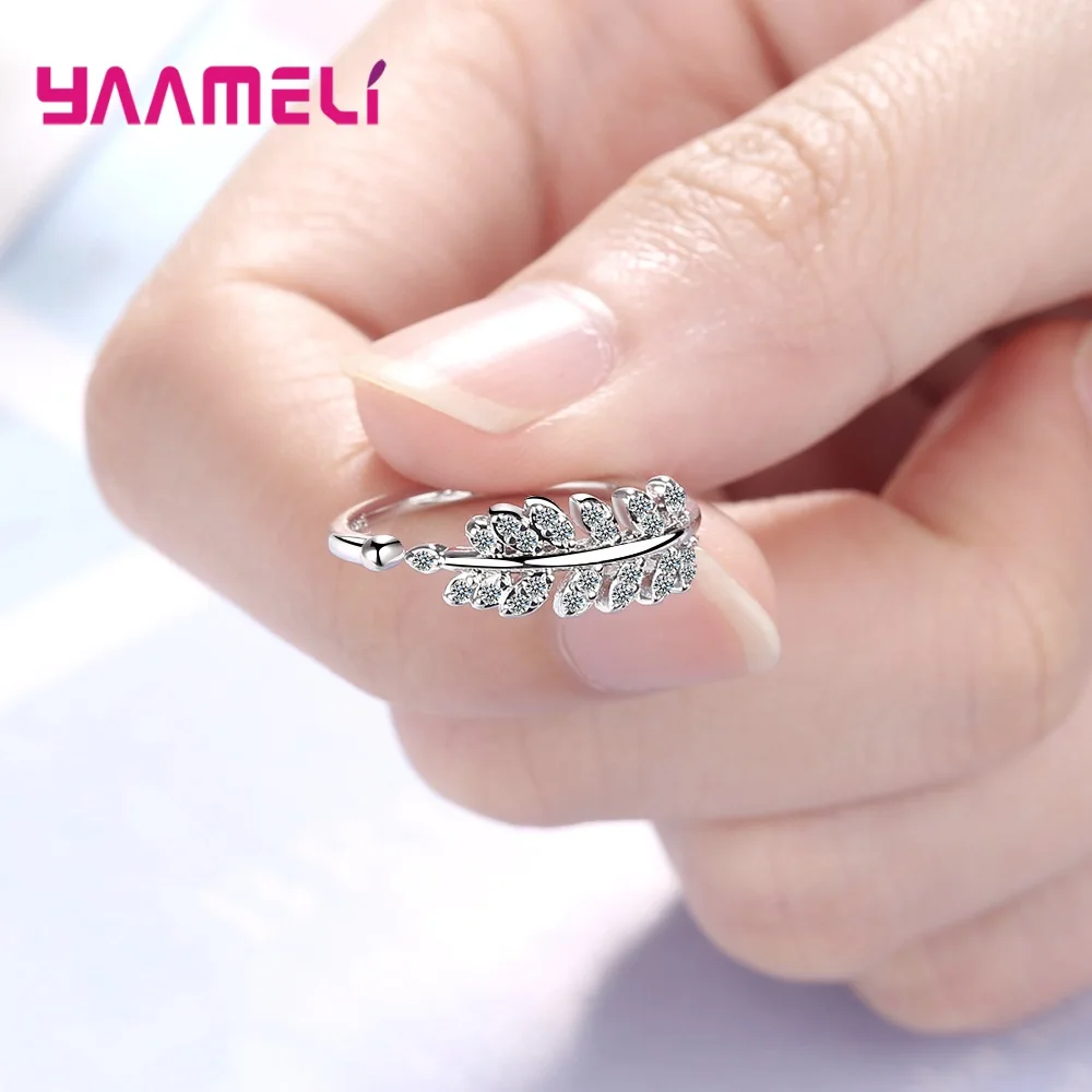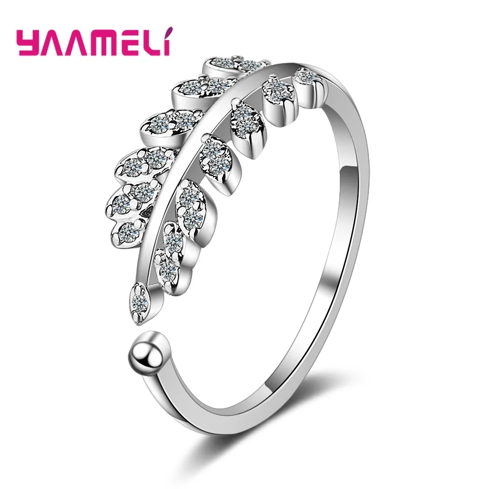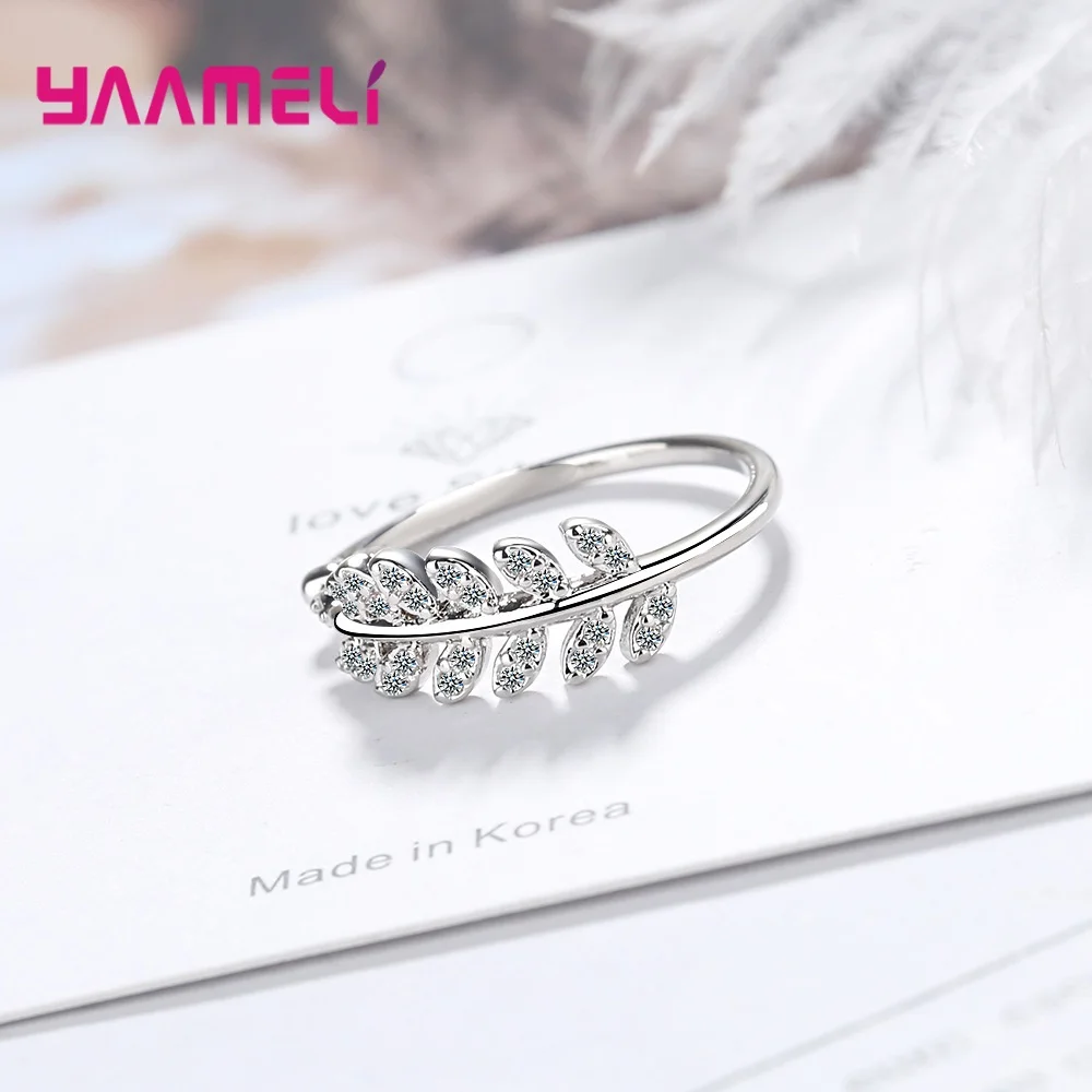 Модные Простые Кольца с фианитом в виде оливкового листа для женщин, открытое штабелируемое кольцо, браслет из стерлингового серебра 925 пробы стразы, Изящные Ювелирные изделия, вечерние