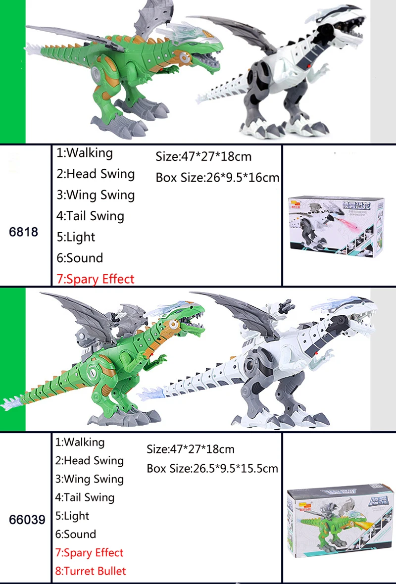 Игрушка электронная, большая ходячий дракон, дышащий распылитель воды со светильник, механические динозавры, модель игрушки для детей
