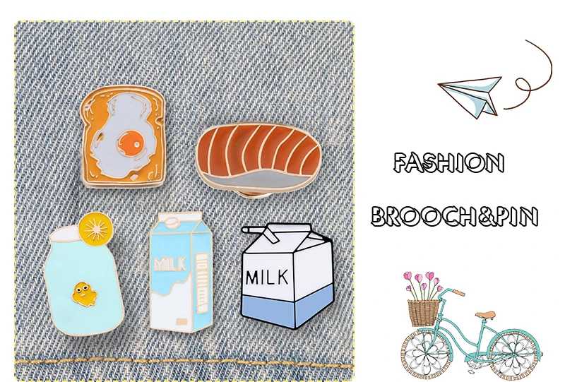 Броши на лацкан с изображением завтрака, бутылки молока, яйца, хлеба, суши, еды, брошь, эмалированный штифт, броши, рубашки, рюкзака, милые Мультяшные женские украшения