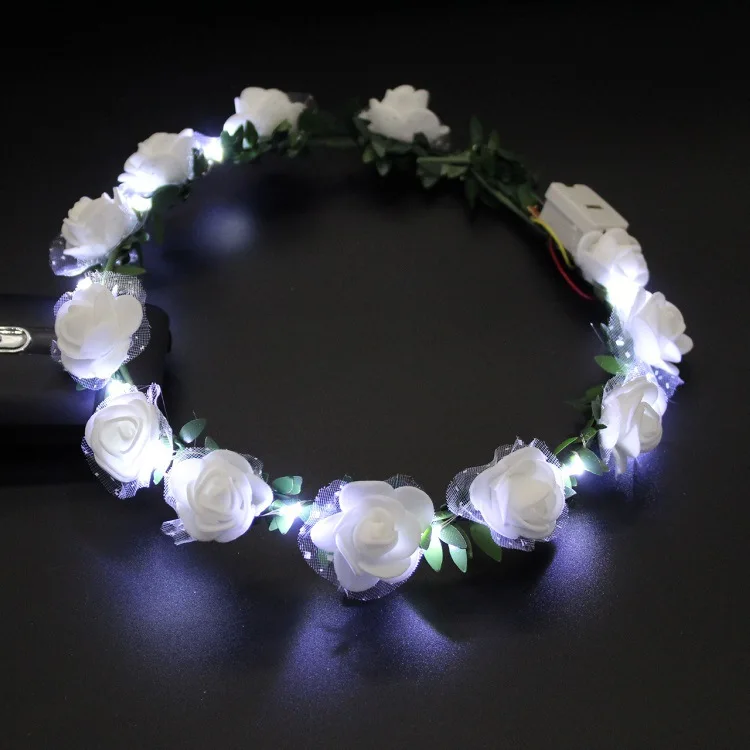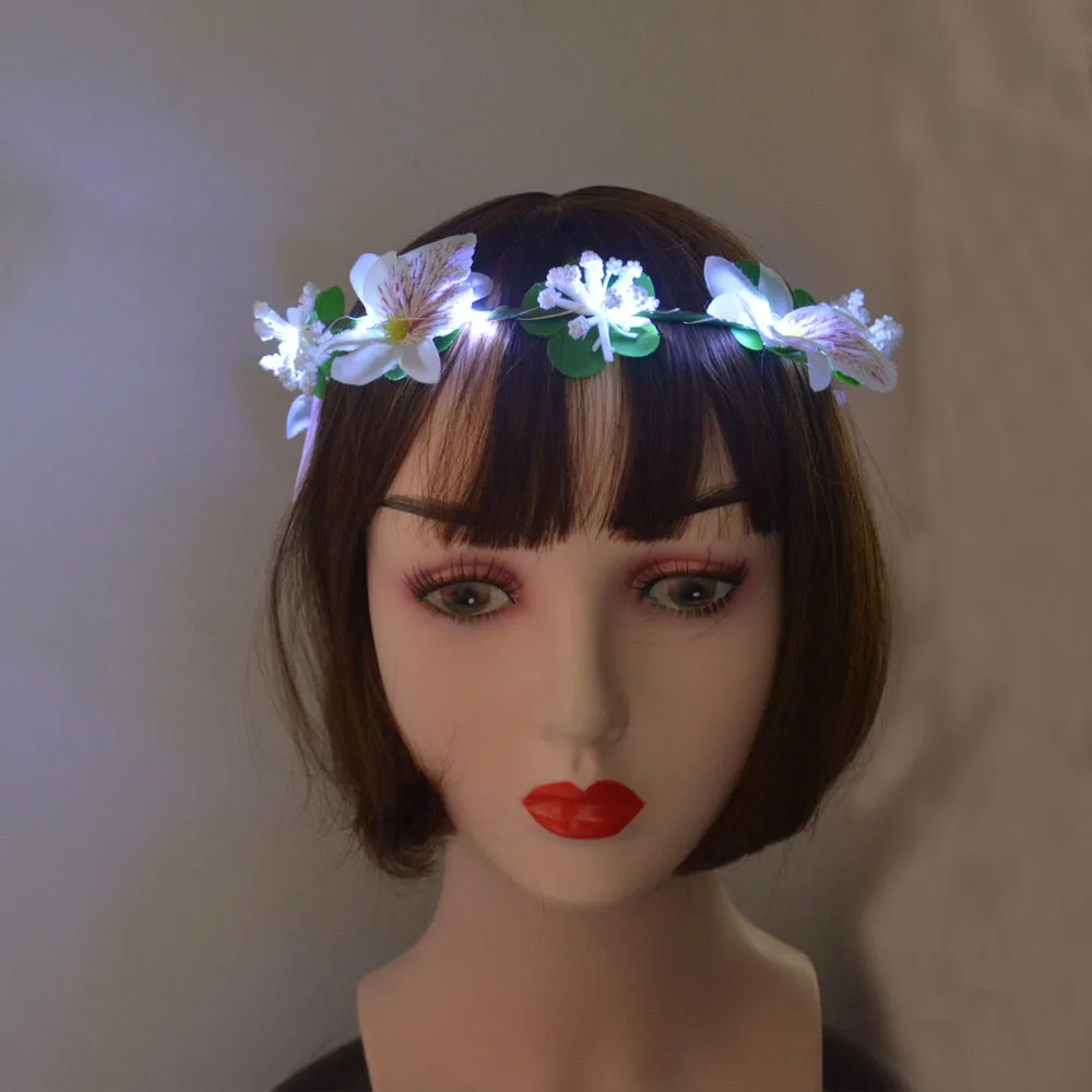 Белый светодиодный цветочный венок для девочек, мигающая повязка на...