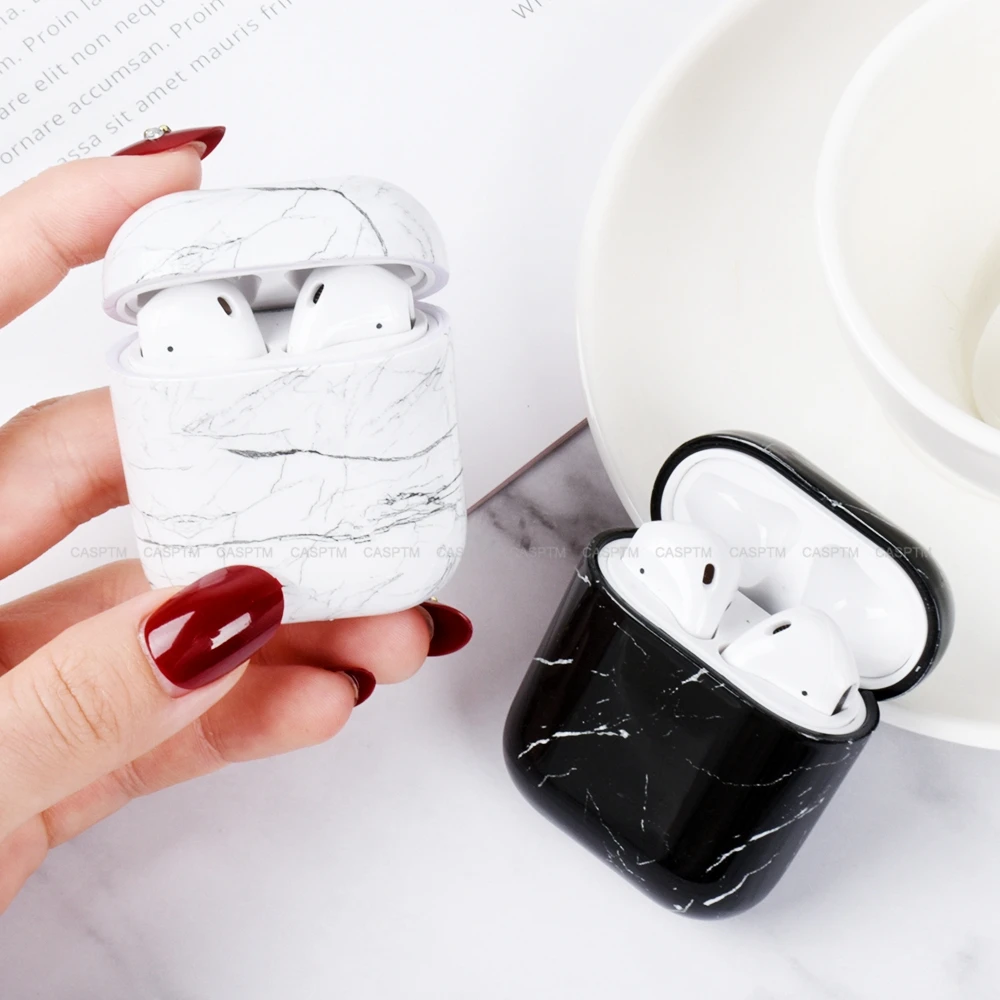 Противоударный защитный чехол с мраморным рисунком для Airpods 1, 2, жесткий защитный чехол из поликарбоната для AirPods 1, 2, чехол для наушников из мраморной кожи