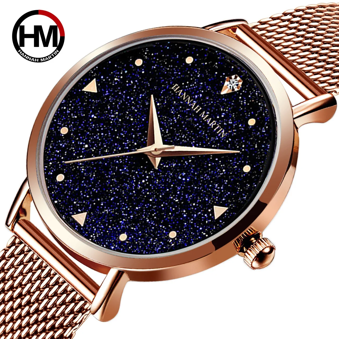 Бренд Hannah Martin, японские водонепроницаемые кварцевые женские часы, звездное небо Алмазный женские часы zegarek damski reloj mujer