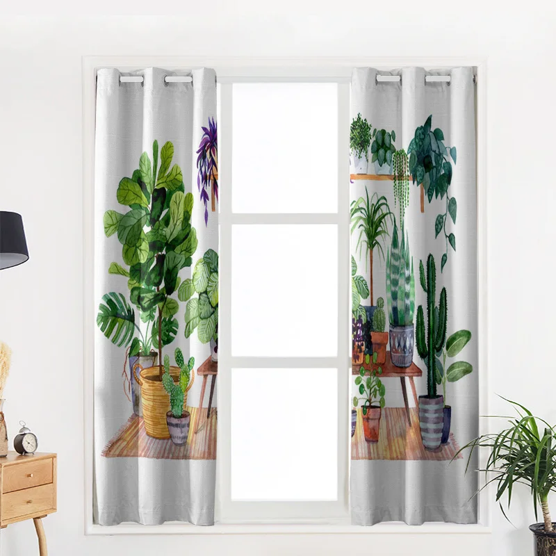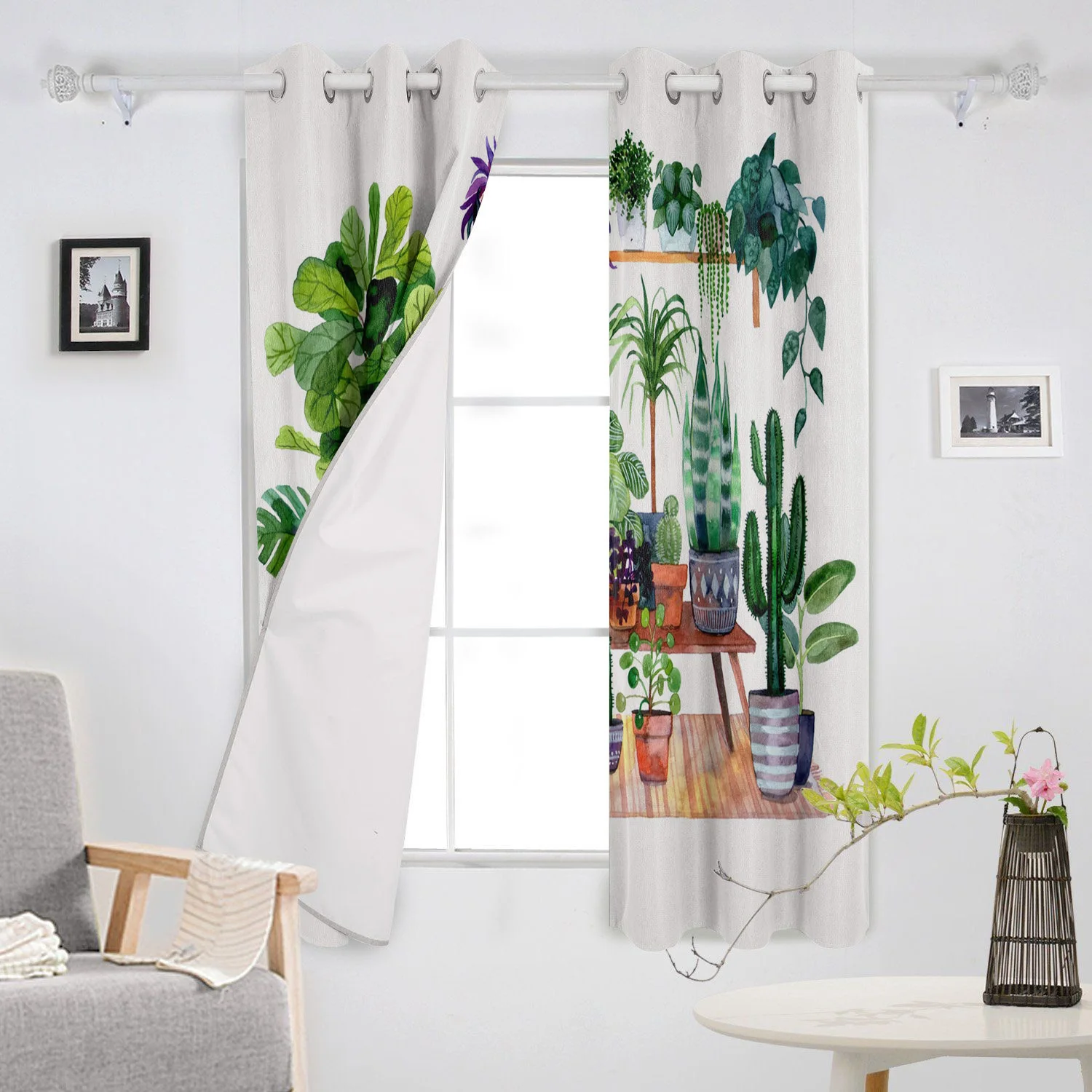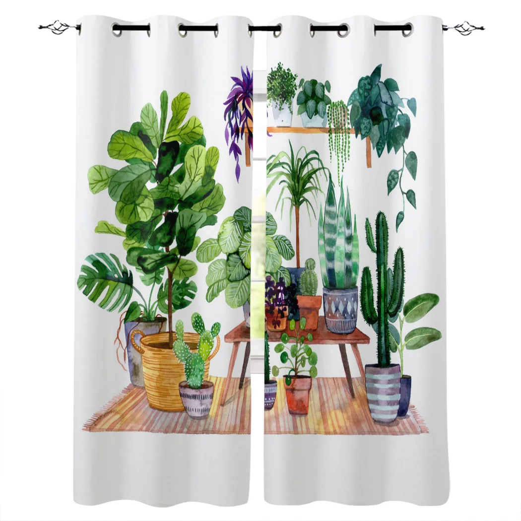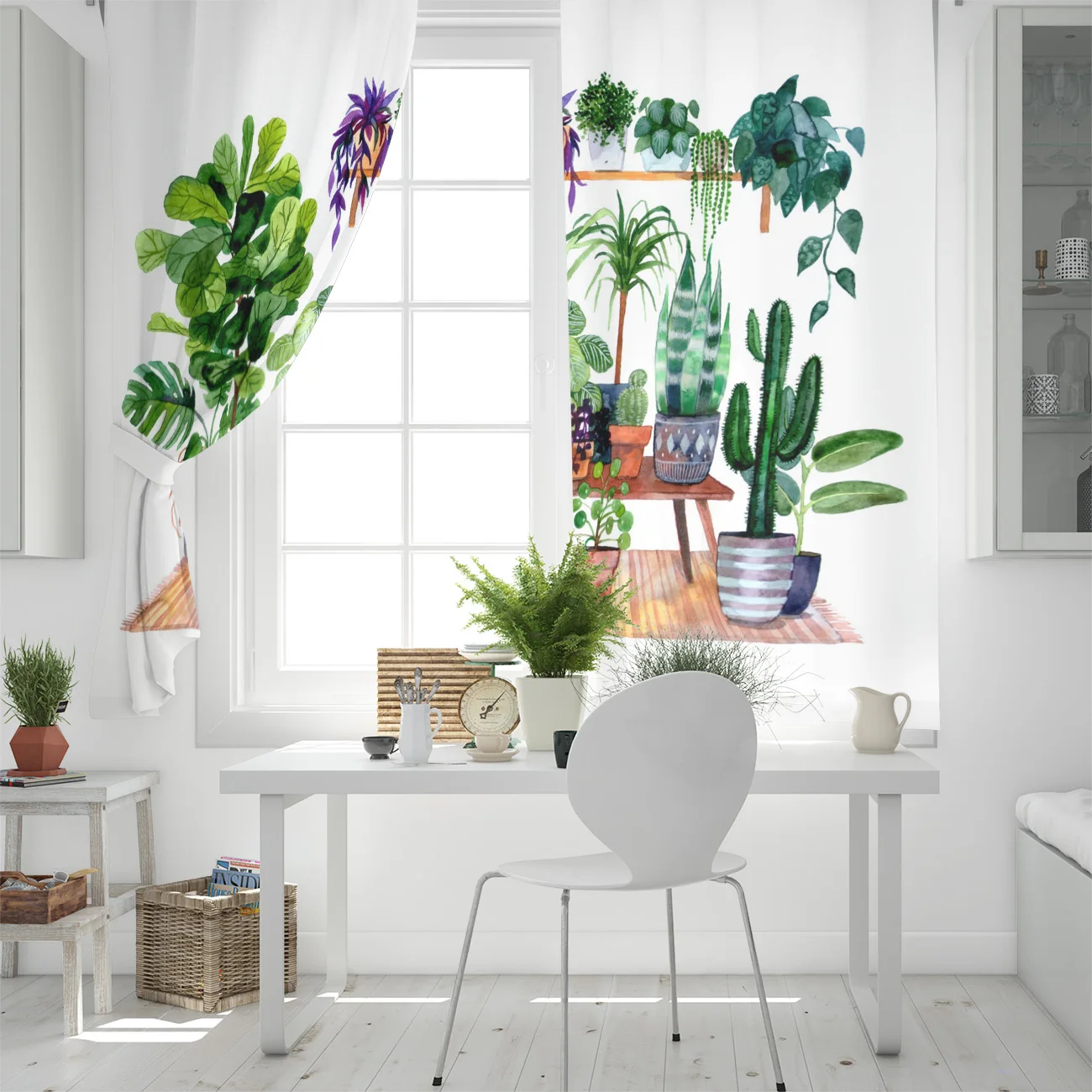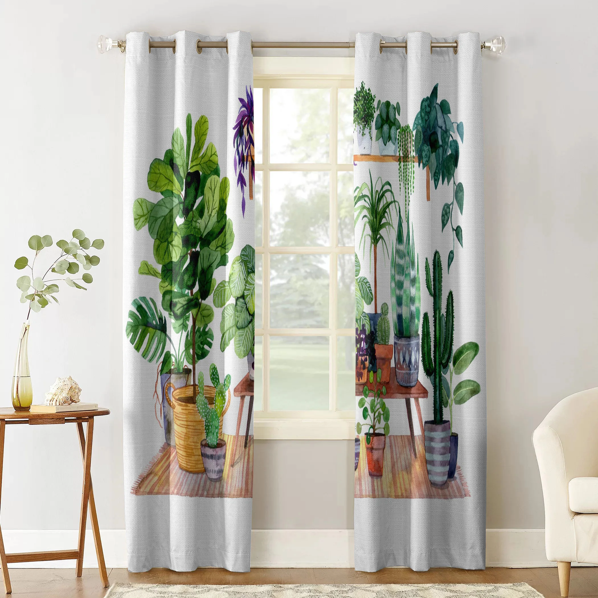 Цветочный горшок, водные кактусы, листья, оконные шторы для гостиной, кухни, спальни, домашний интерьер, декоративные шторы