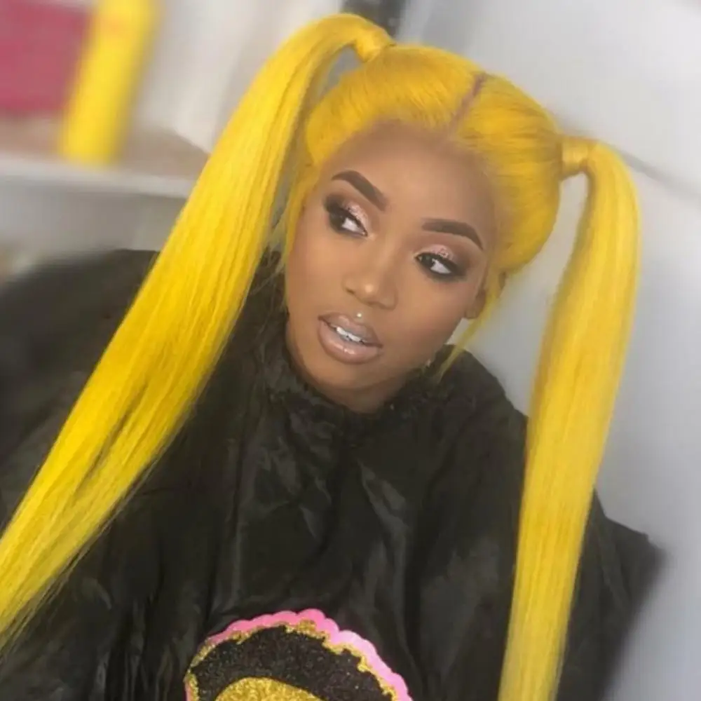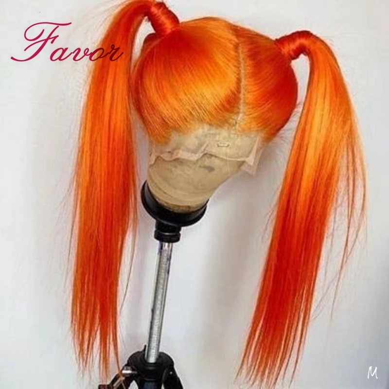 Жёлтый оранжевый темно-синий парик на кружеве с предварительно выщипанными волосами бразильские волосы remy прямые волосы на кружеве человеческие волосы парик