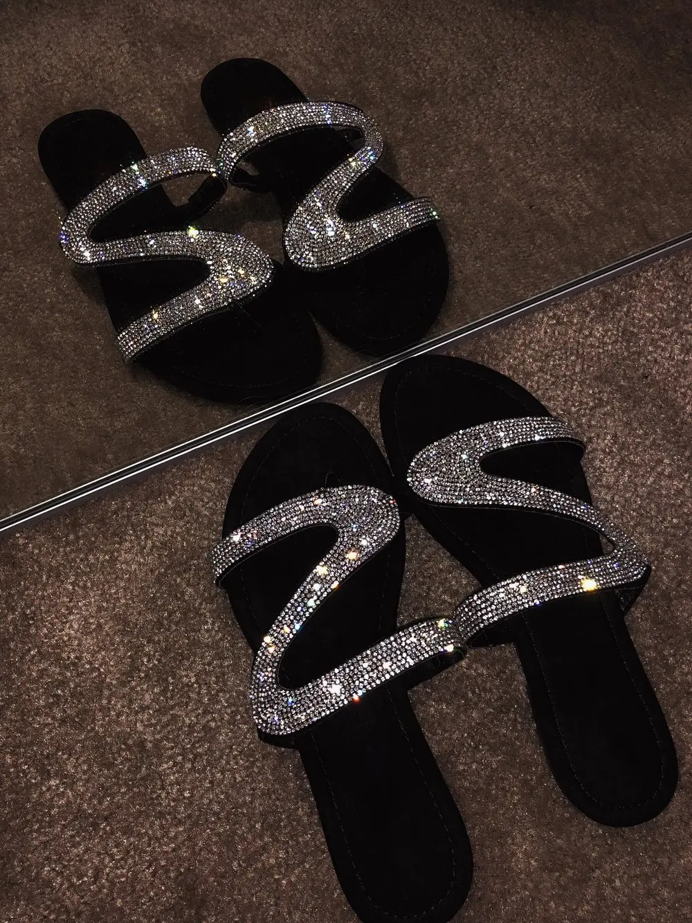 Новинка 2022, сандалии, женские шлепанцы, дизайнерская обувь, пляжные шлепанцы на плоской подошве, Летние сланцы, модная блестящая обувь, блестящие шлепанцы, женская обувь
