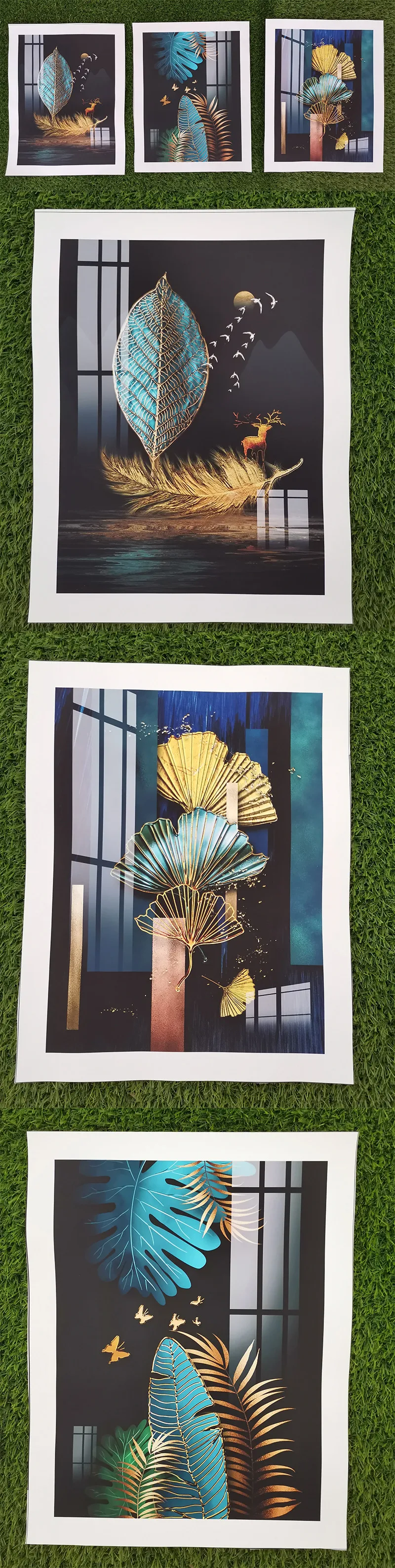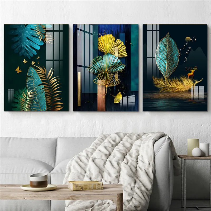 3 Панели, дешевые картины на холсте в китайском стиле, зеленые и золотые, водонепроницаемые настенные художественные принты, домашний декор, постеры на холсте, принты