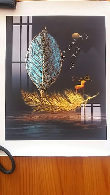 Картина была намотана на пластиковую трубку. всё пришло целым, упаковка выдержала. холст - полимерный - и нет мазков , а это означает, что картину не выдашь за художественную, ну а украсить интерьер - можно. осталось найти к ней рамку.