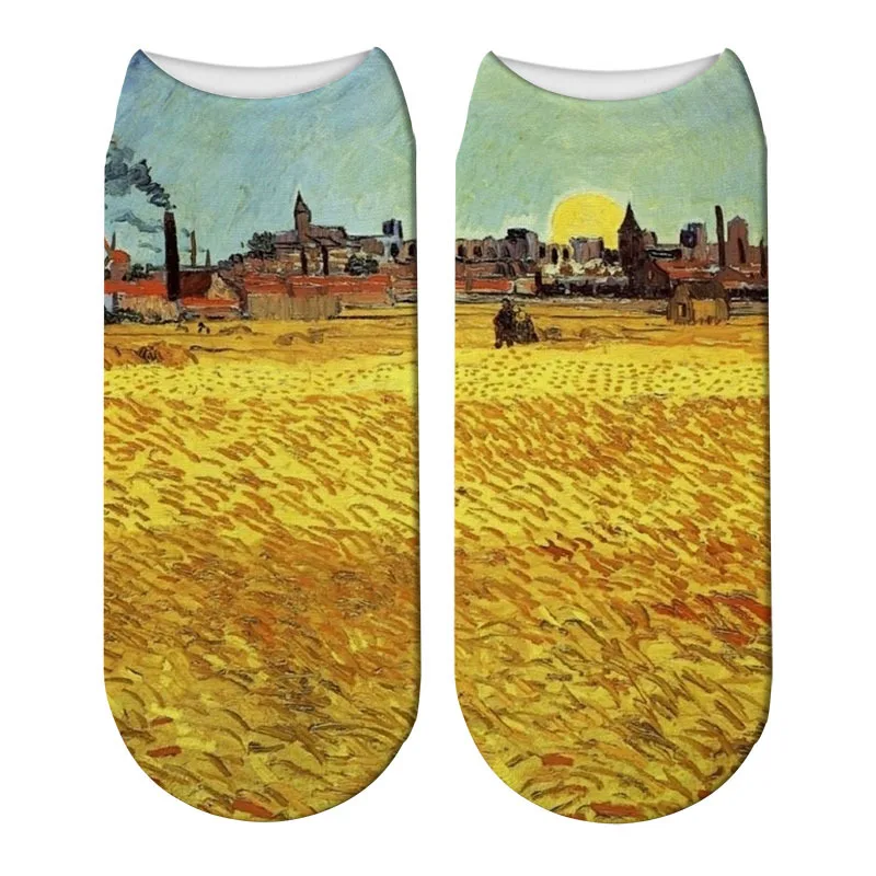 VISNXGI женские забавные носки с масляной росписью скейтборд носки картина женщина Мона Лиза Звезда ночь ретро унисекс Мужчины Женщины носки Мода