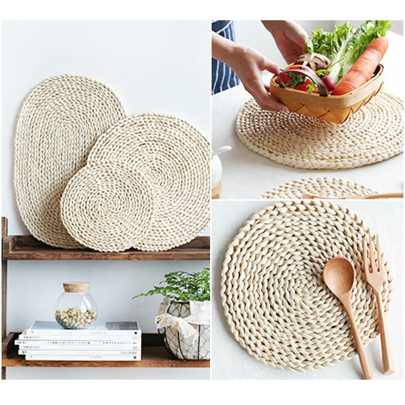 Плетеная соломенная подстилка, утолщенный коврик для обеденного сто...