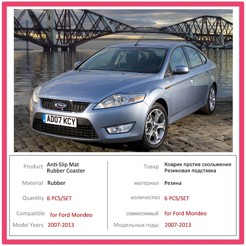 Резиновый противоскользящий коврик для Ford Mondeo MK4 2007 2013, накладка на чашку телефона, подставка для ворот, аксессуары 2008, 2009, 2010, 2011