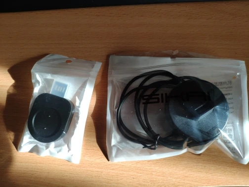 Приехала посылка меньше, чем за две недели, считай, моментально. Содержимое, как описано (фото 1). Очень оригинальная плашка для зарядки часов - вставить в разъём USB её можно любой стороной (фото 2, 3) и часы реально в обоих положениях заряжаются. Теперь о недостатках - магнит, установленный в плашке, слабее того, что в родном заряднике, но часы удерживает даже «вверх ногами», только по кругу немного они могут болтаться; удлинитель полнофункциональный, проводит не только питание, но и данные, но провода тонковаты, от двухамперного зарядника до телефона доходит только 1,2 А. Недостатки некритичны, а достоинства очевидны - рекомендую к покупке