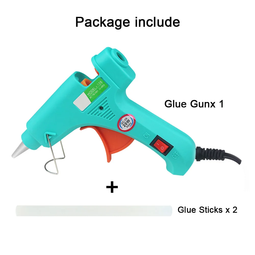 Включает 1 шт. клеевой пистолет, 2 шт. клеевые палочки