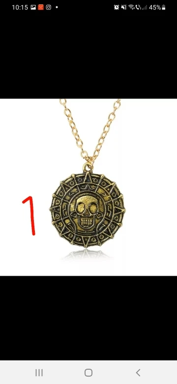 Ожерелье с подвеской в виде золотистого цвета с изображением пиратов Карибского моря