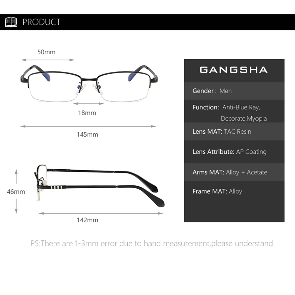 Оправа для мужских очков GANGSHA, классические квадратные очки с светильник в винтажном стиле, в деловом стиле, 8801