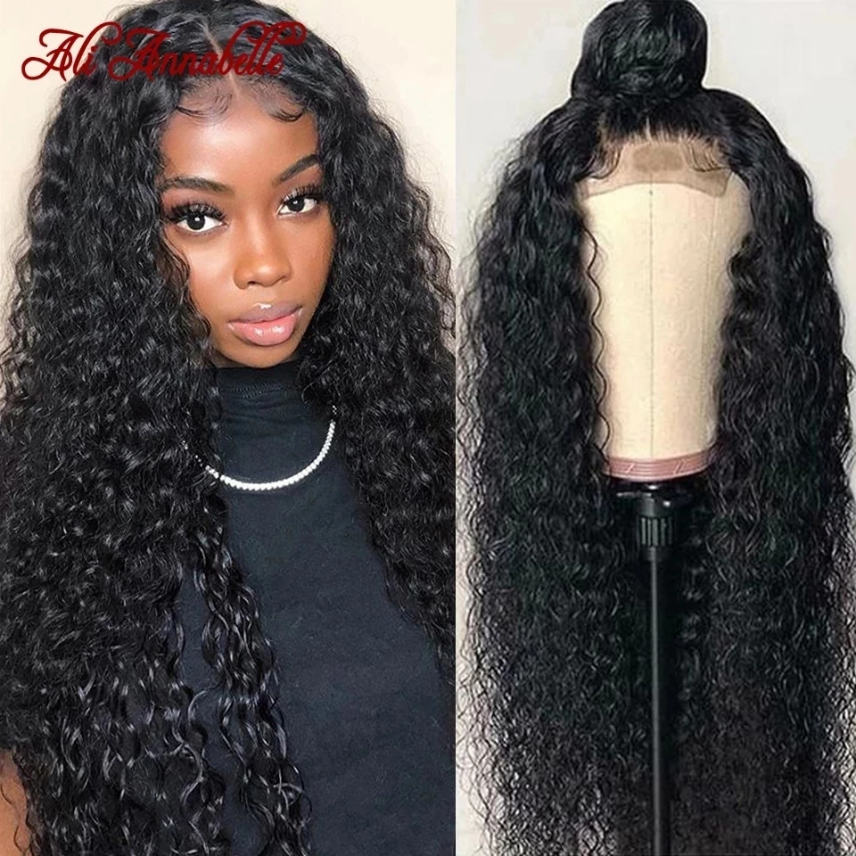 Парик ALI ANNABELLE с кудрявыми кружевами, парики из человеческих волос для женщин, предварительно выщипанная линия волос, 4x4, кудрявые парики с кудрявыми кружевами спереди, парики на застежке
