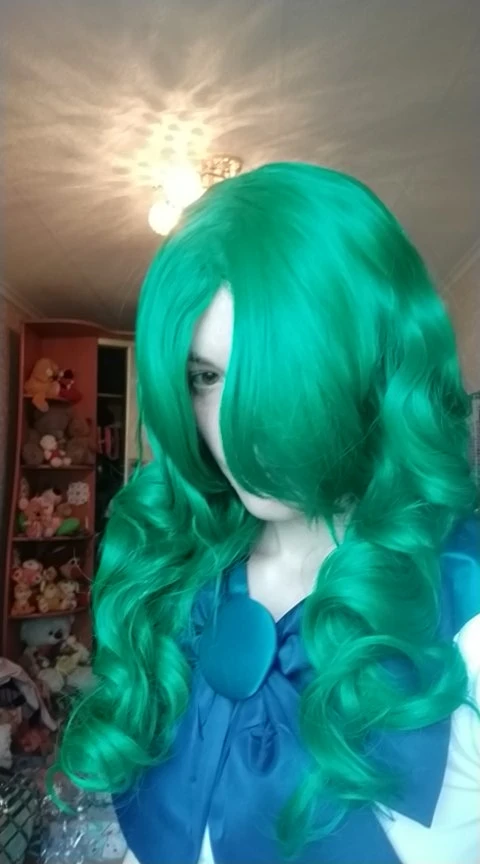 Парик для косплея Kaioh Michiru Сейлор Нептун длиной 65 см зеленые вьющиеся термостойкие синтетические волосы парик + шапочка для парика