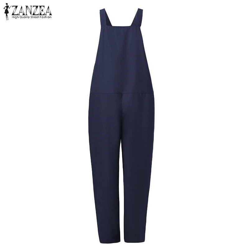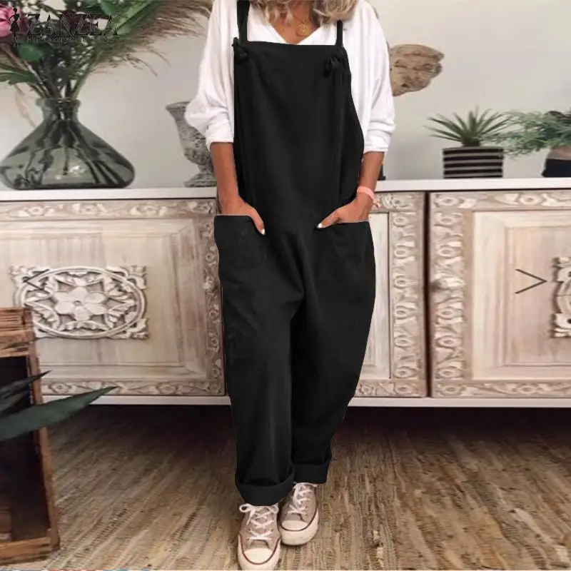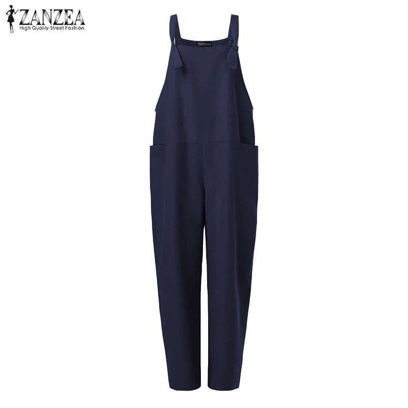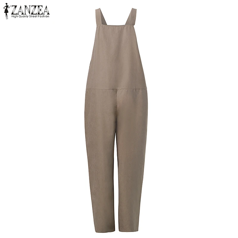 ZANZEA 2022 Модный женский комбинезон на подтяжках без рукавов повседневные Комбинезоны с широкими штанинами свободные Карманы Комбинезоны Длинные Combinaison