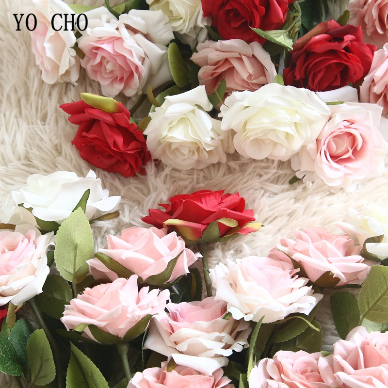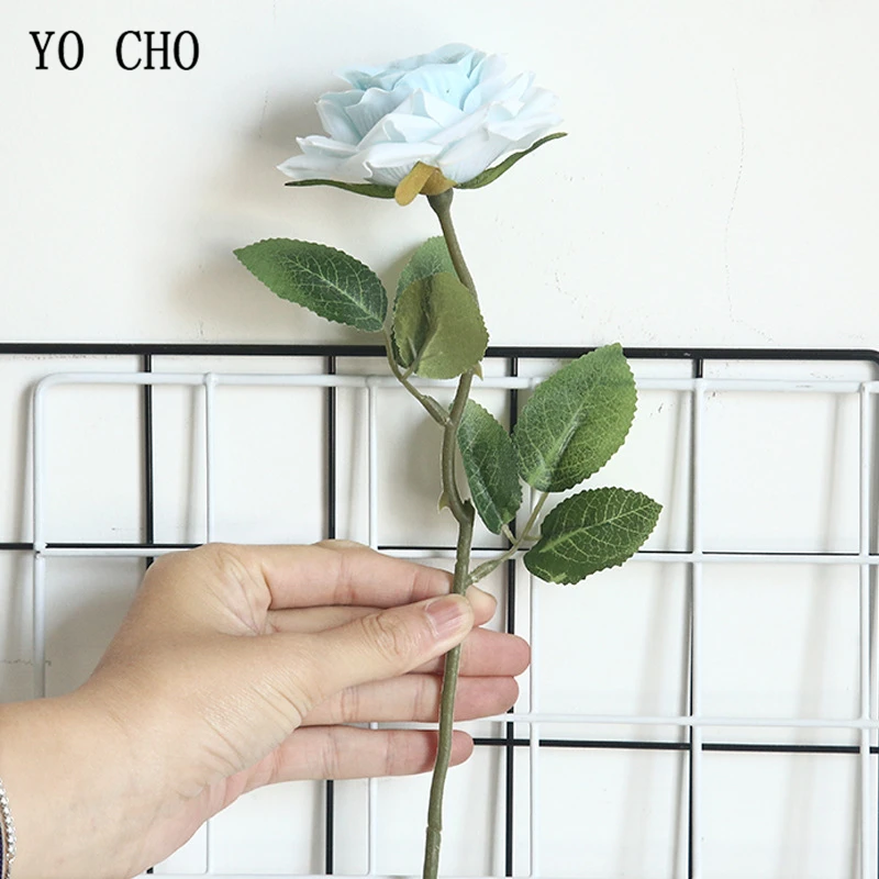YO CHO искусственный Шелковый цветок розы Букет для девочек «сделай сам», украшение для дома вечерние свадьбы, Цветочная композиция, белая синяя Роза, декор комнаты