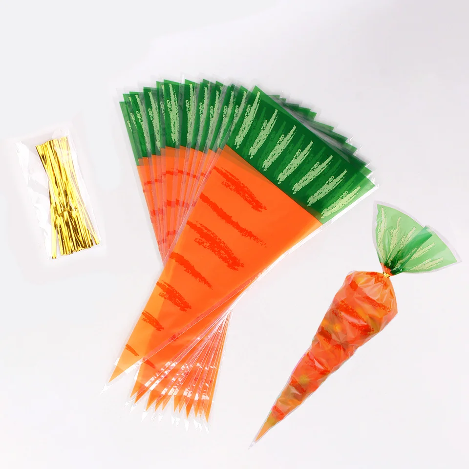 Пластиковый пакет для украшения детских дней рождения, 20 шт., пасхальный морковь, кролик, Подарочный пакет конфеты конусов
