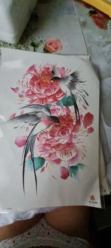 Временные татуировки-наклейки с пионами, розами, женский боди-арт, татуировки для девушек, груди, цветок