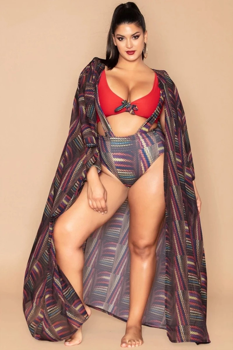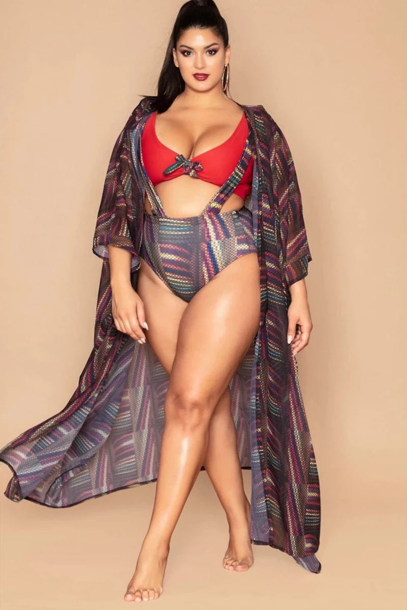 Сплошной купальник 2 в 1 с высокой талией и бантом, женский купальный костюм, накидка, монокини, бандажный купальник большого размера, размера плюс размер