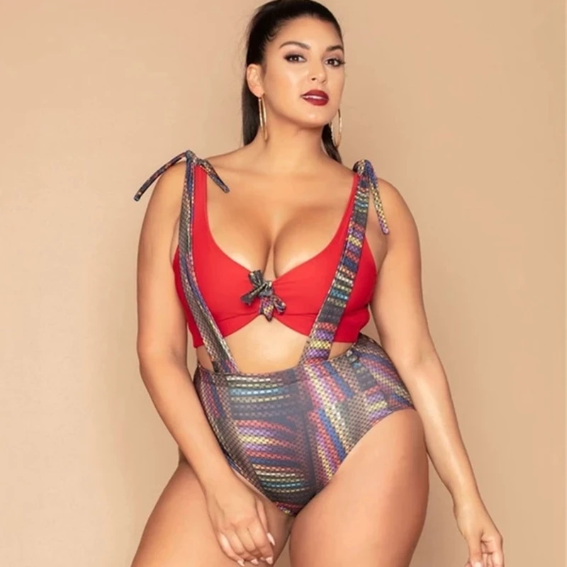 Женский купальник с высокой талией, бикини большого размера плюс с ...