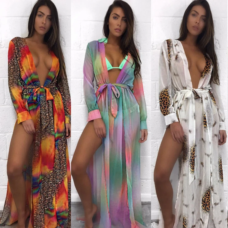 Женское сексуальное бикини, накидка, купальник, пляжная юбка макси с запахом, саронг, кимоно, кафтан, Пляжное Платье